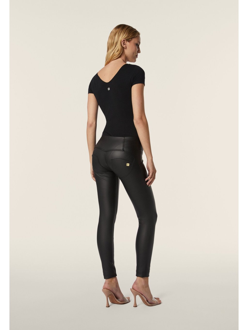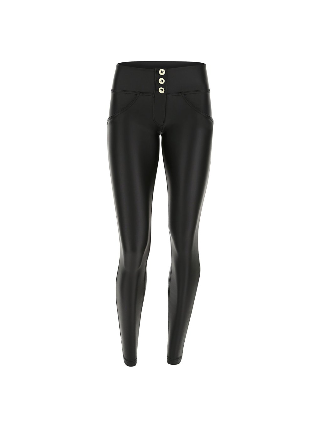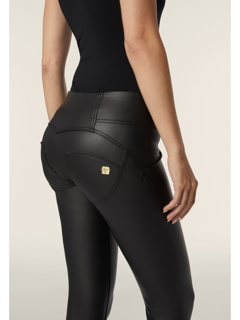 Freddy kalhoty FAUX-leather kožené v černé barvě, tři knoflíčky, střední pas, skinny střih