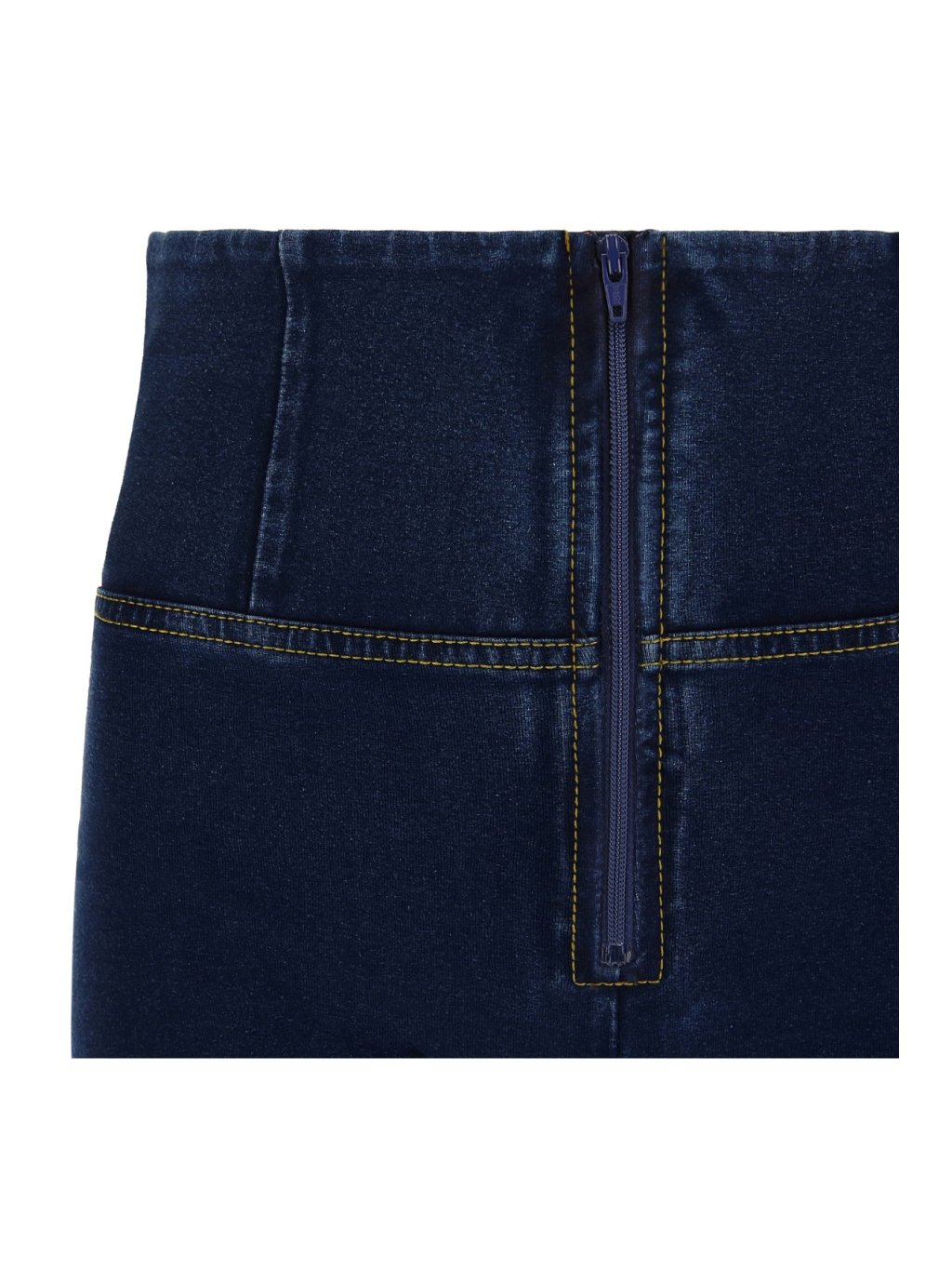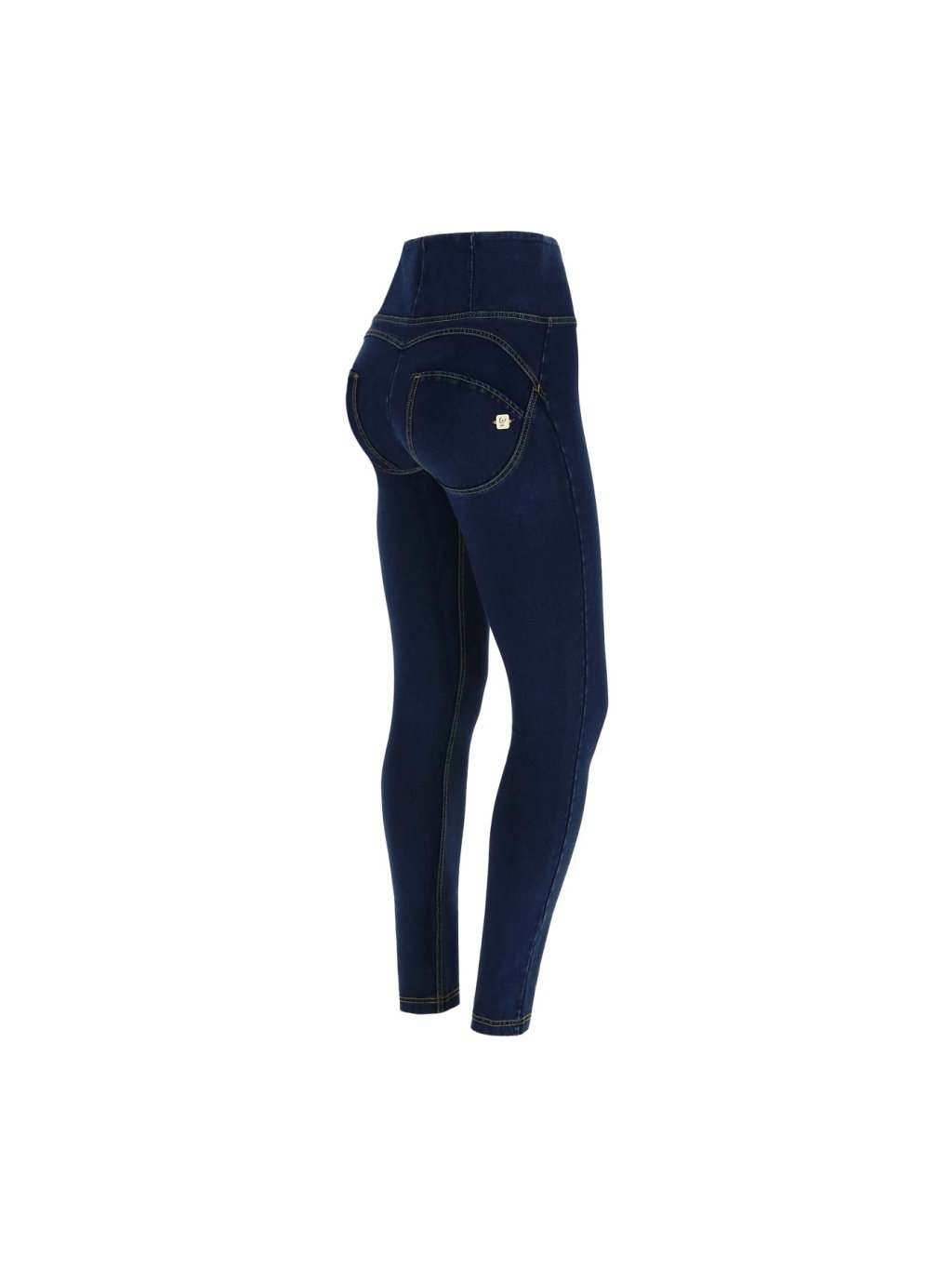 Freddy kalhoty v džínové tmavě modré, žlutý šev, vysoký pas, skinny střih