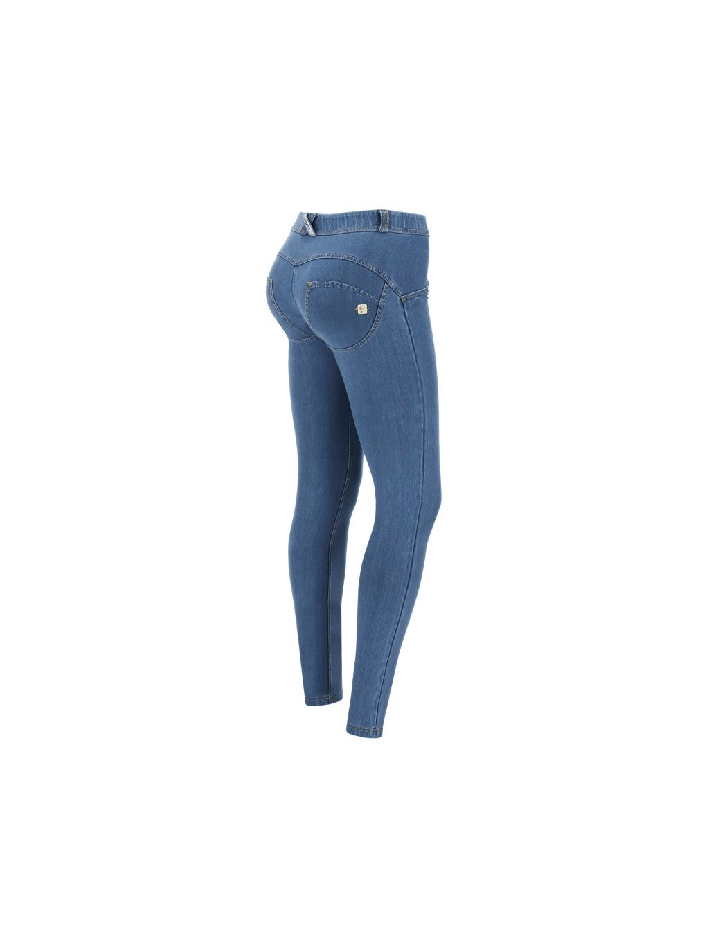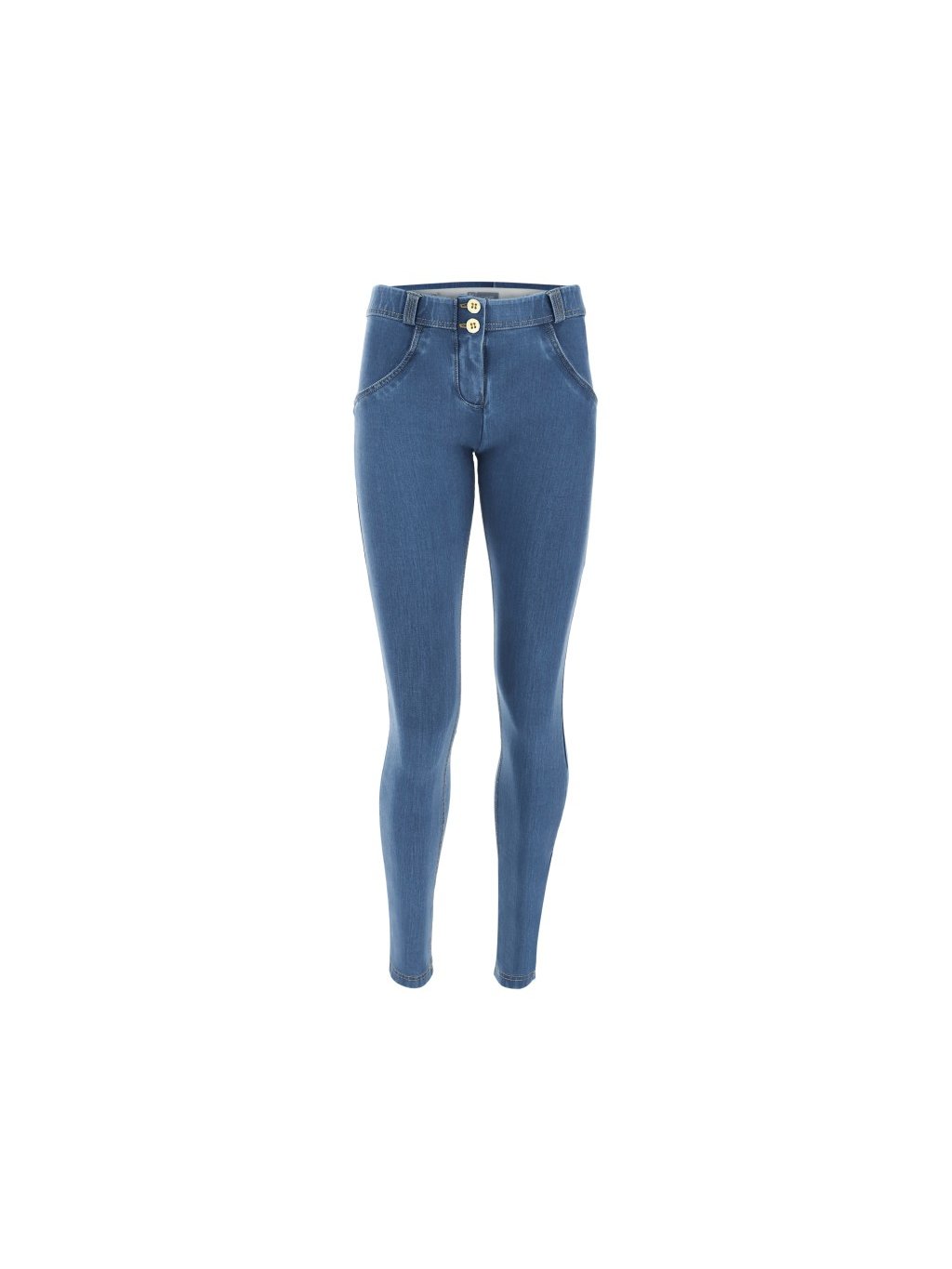 Freddy kalhoty WR.UP ® v džínové světle modré, žlutý šev, normální pas, skinny střih, eco-friendly materiál LYOCELL