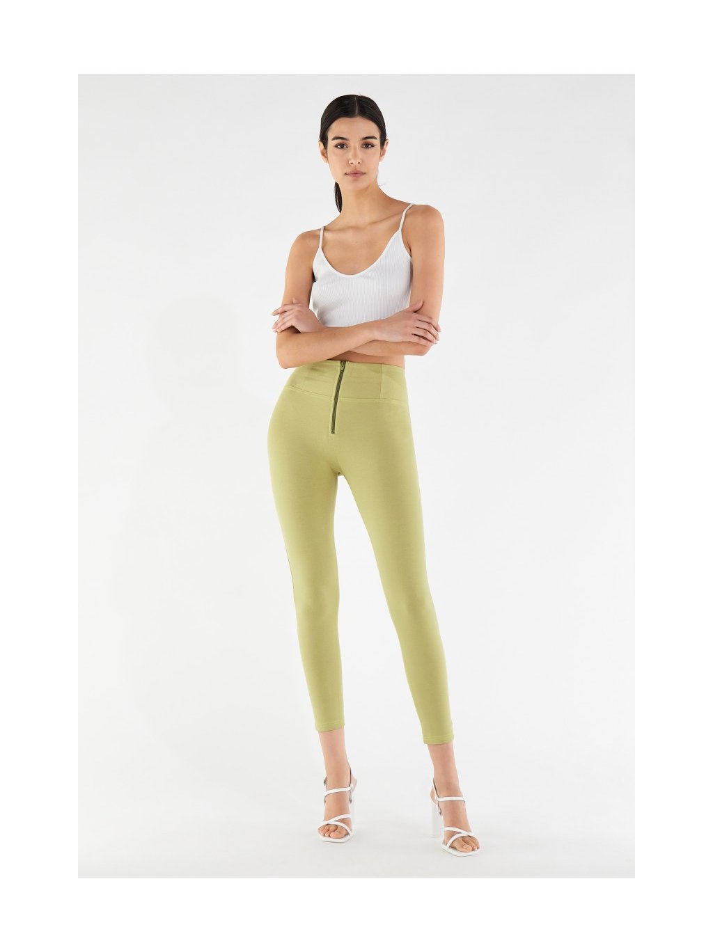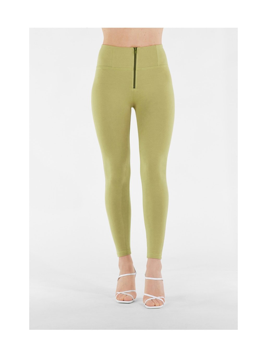 Freddy kalhoty WR.UP v limetkové barvě, vysoký pas, superskinny střih, 7/8 délka, organická bavlna
