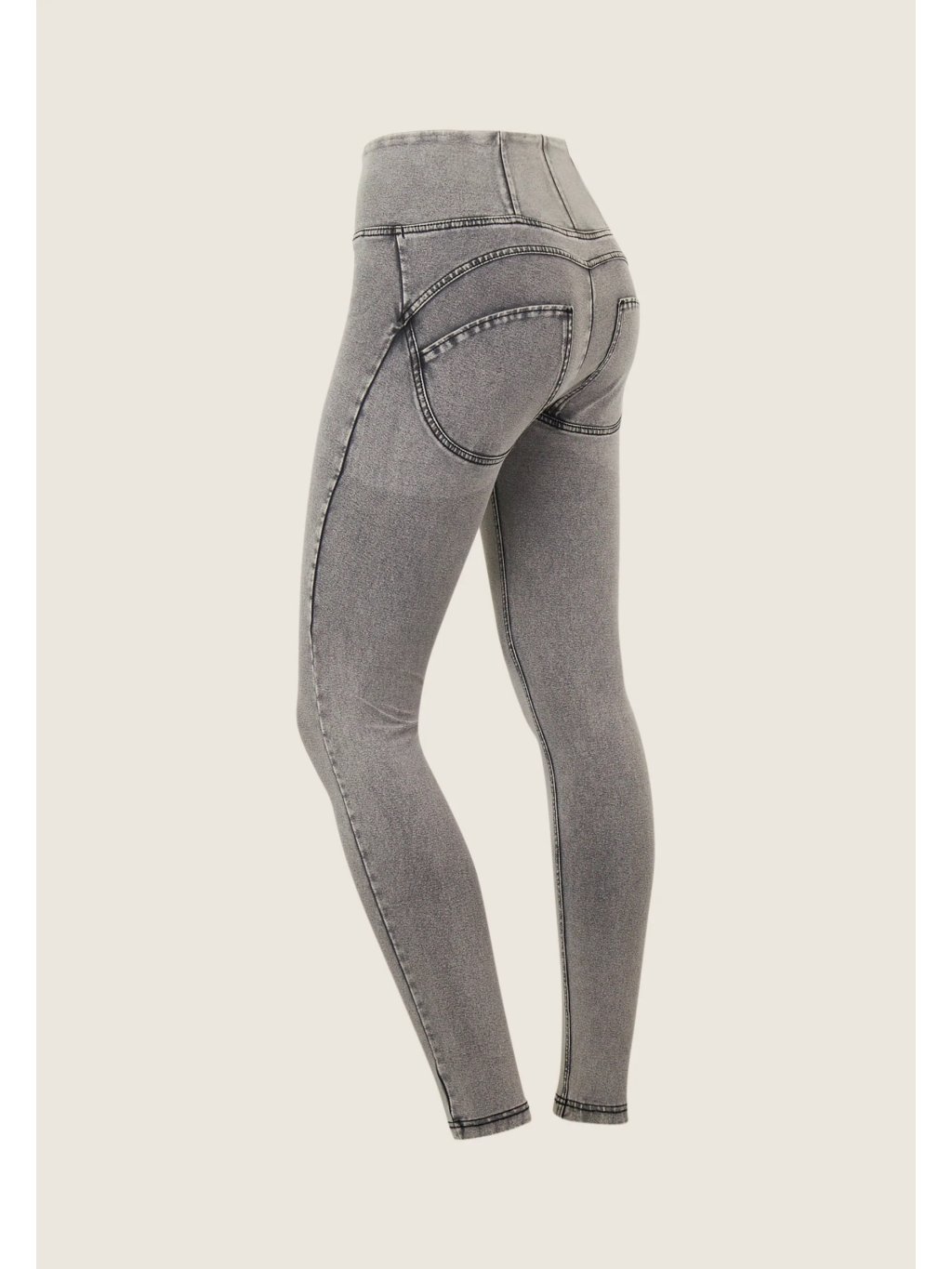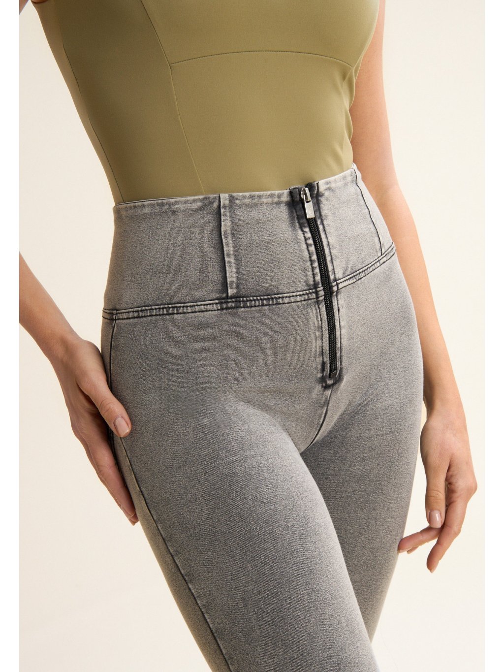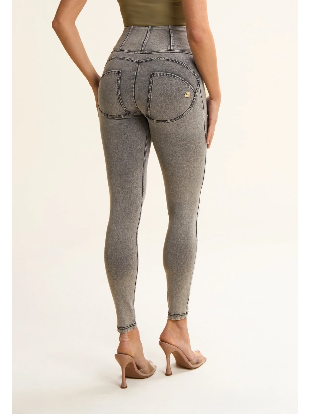 Freddy kalhoty WR.UP džínové šedivé, černý šev, vysoký pas, superskinny střih, denim žerzej