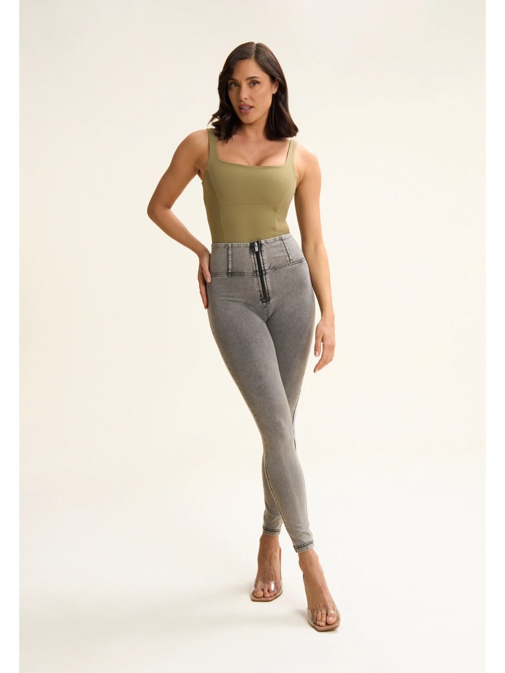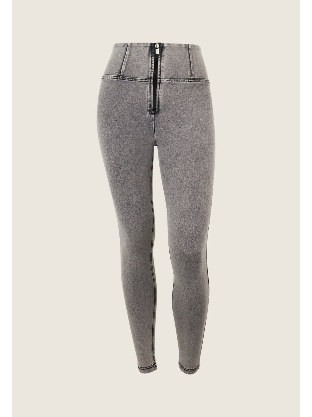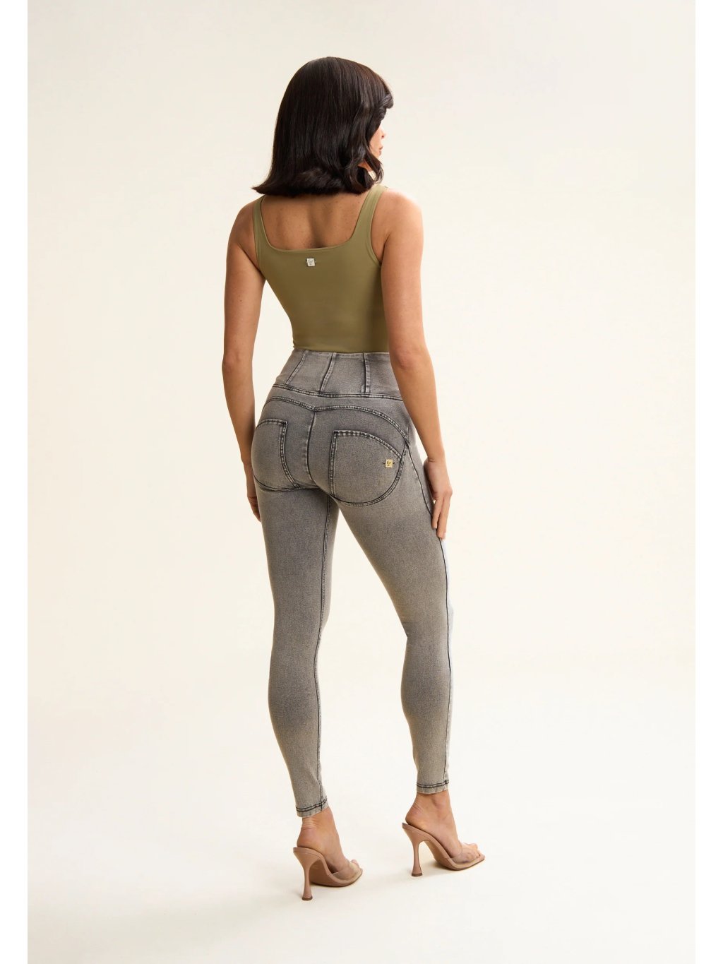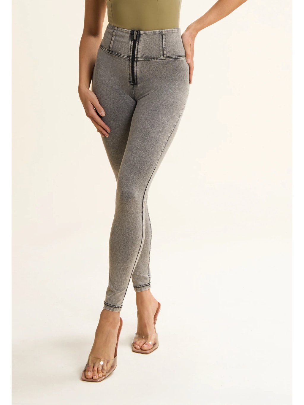 Freddy kalhoty WR.UP džínové šedivé, černý šev, vysoký pas, superskinny střih, denim žerzej