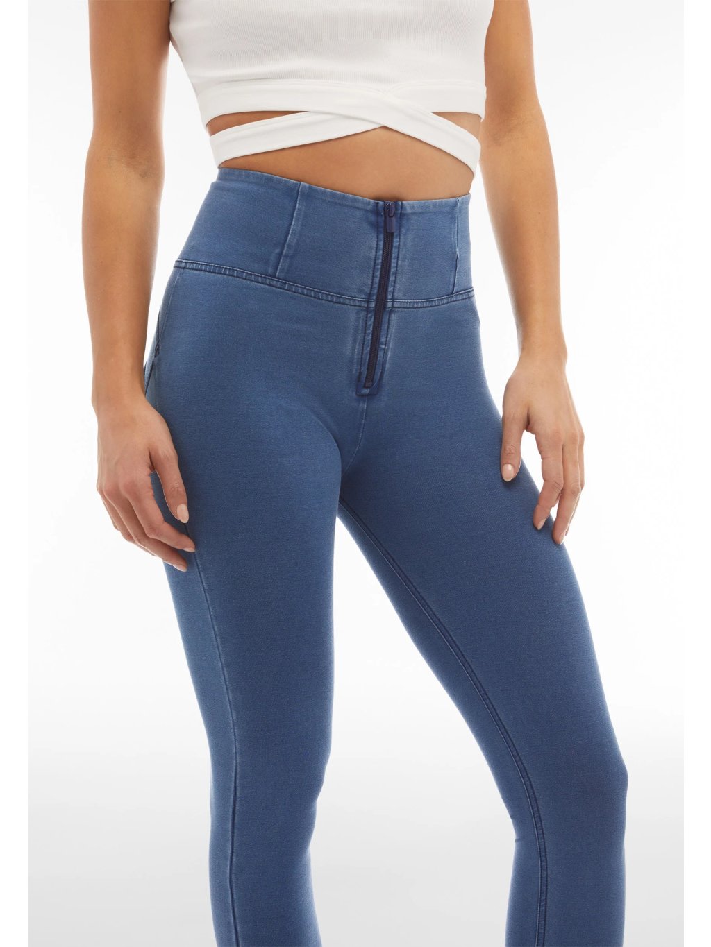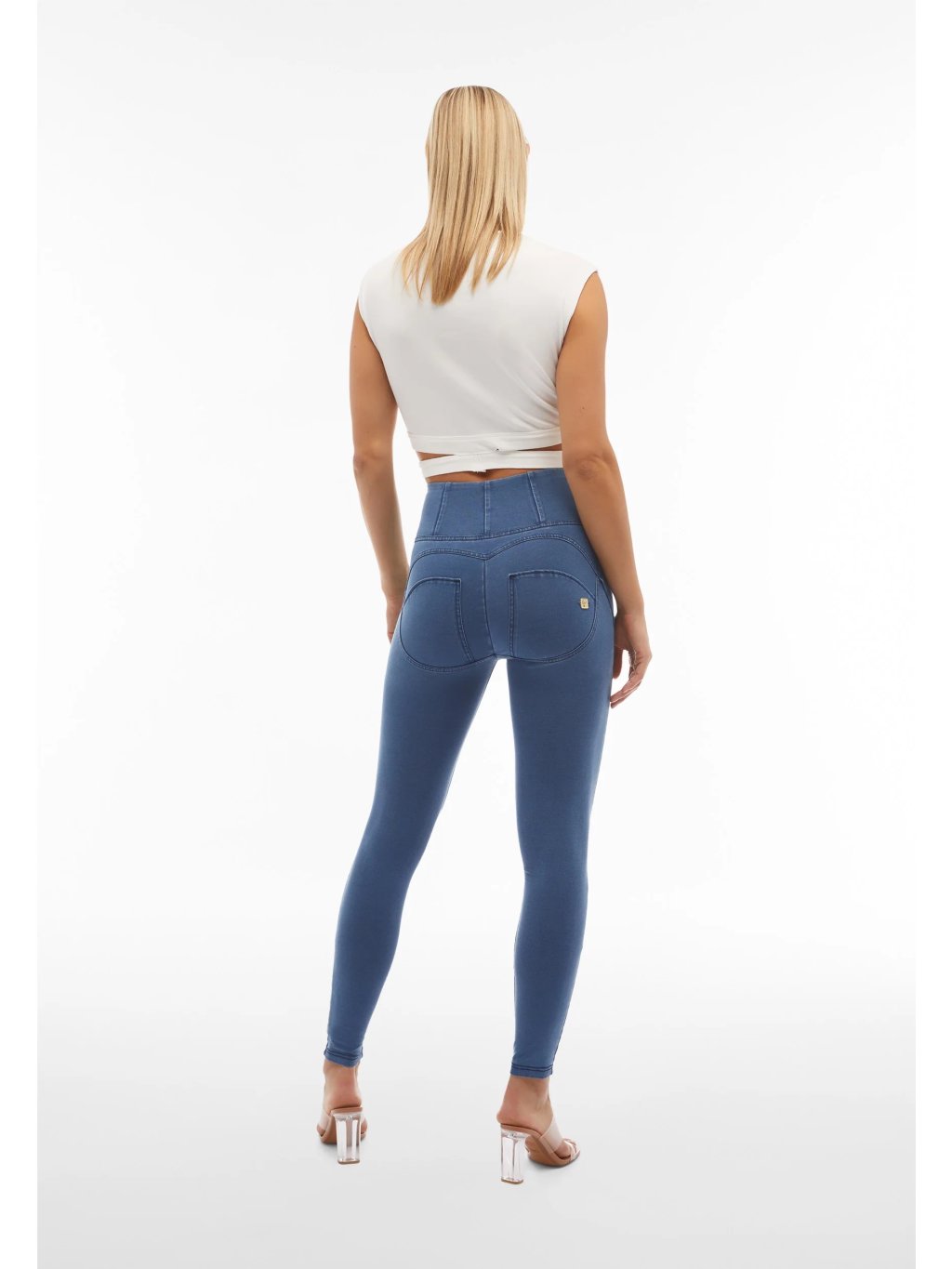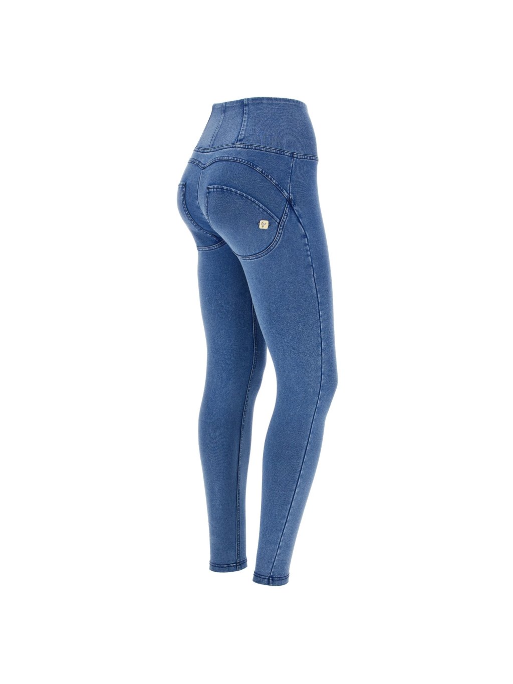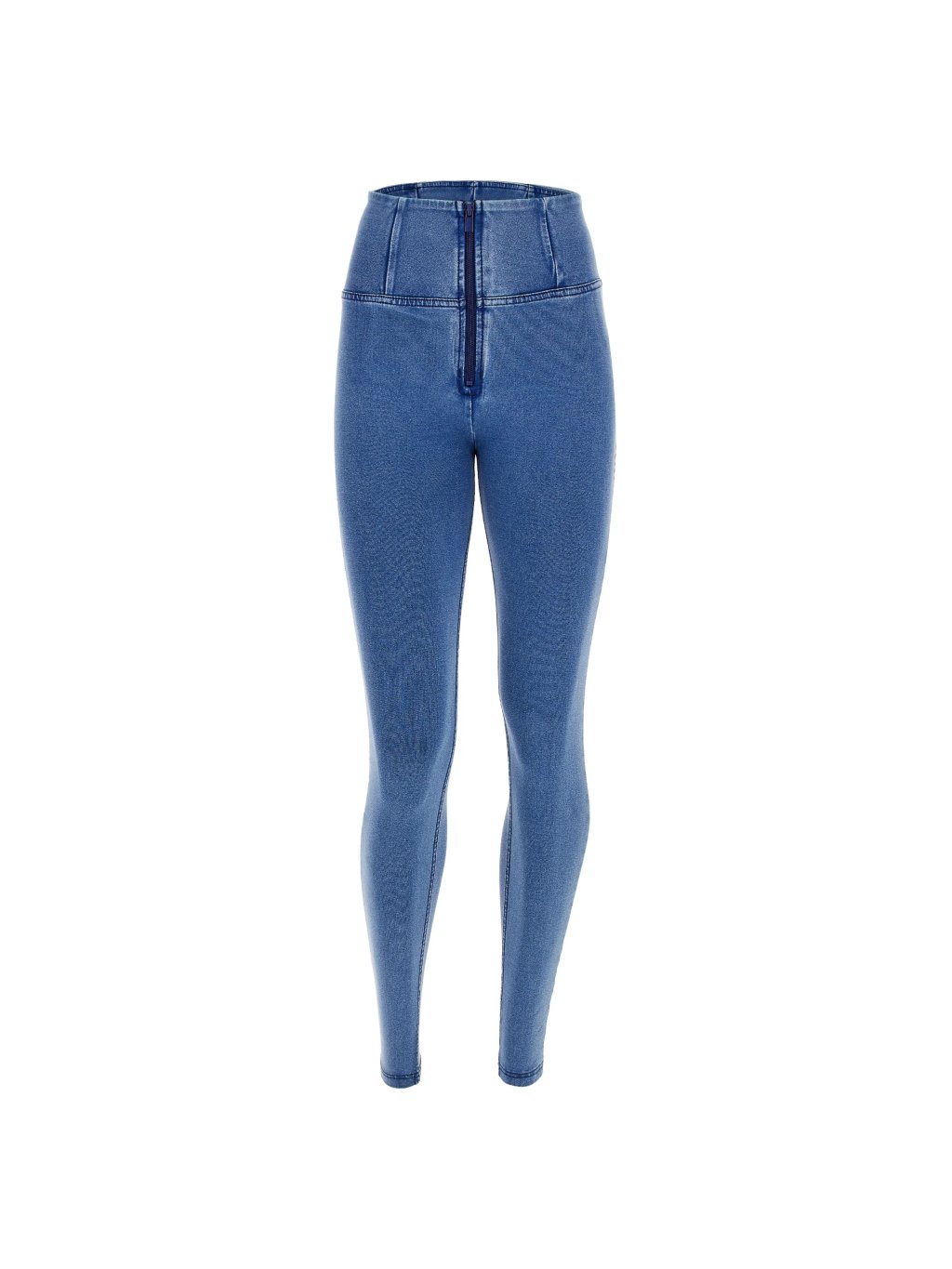 Freddy kalhoty WR.UP džínové světle modré, modré švy, vysoký pas, superskinny střih, denim žerzej