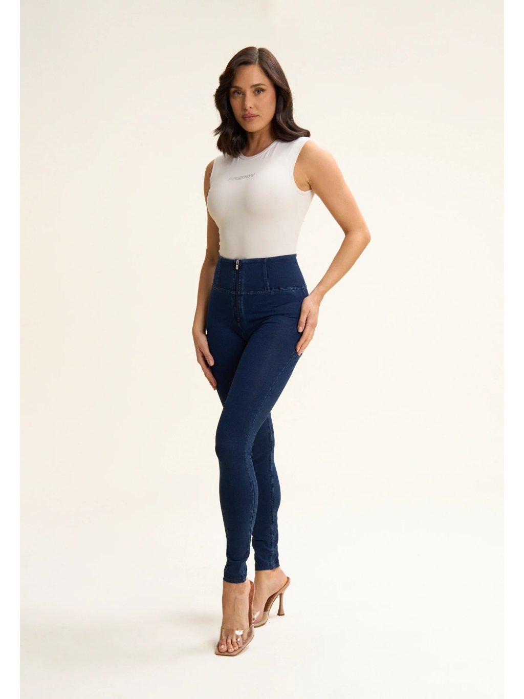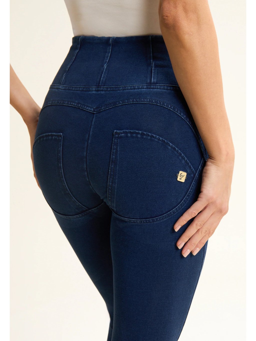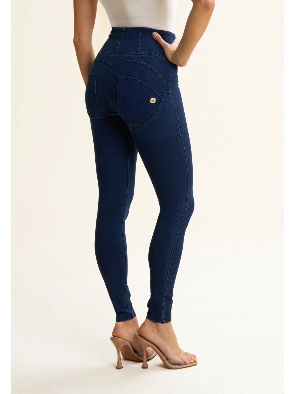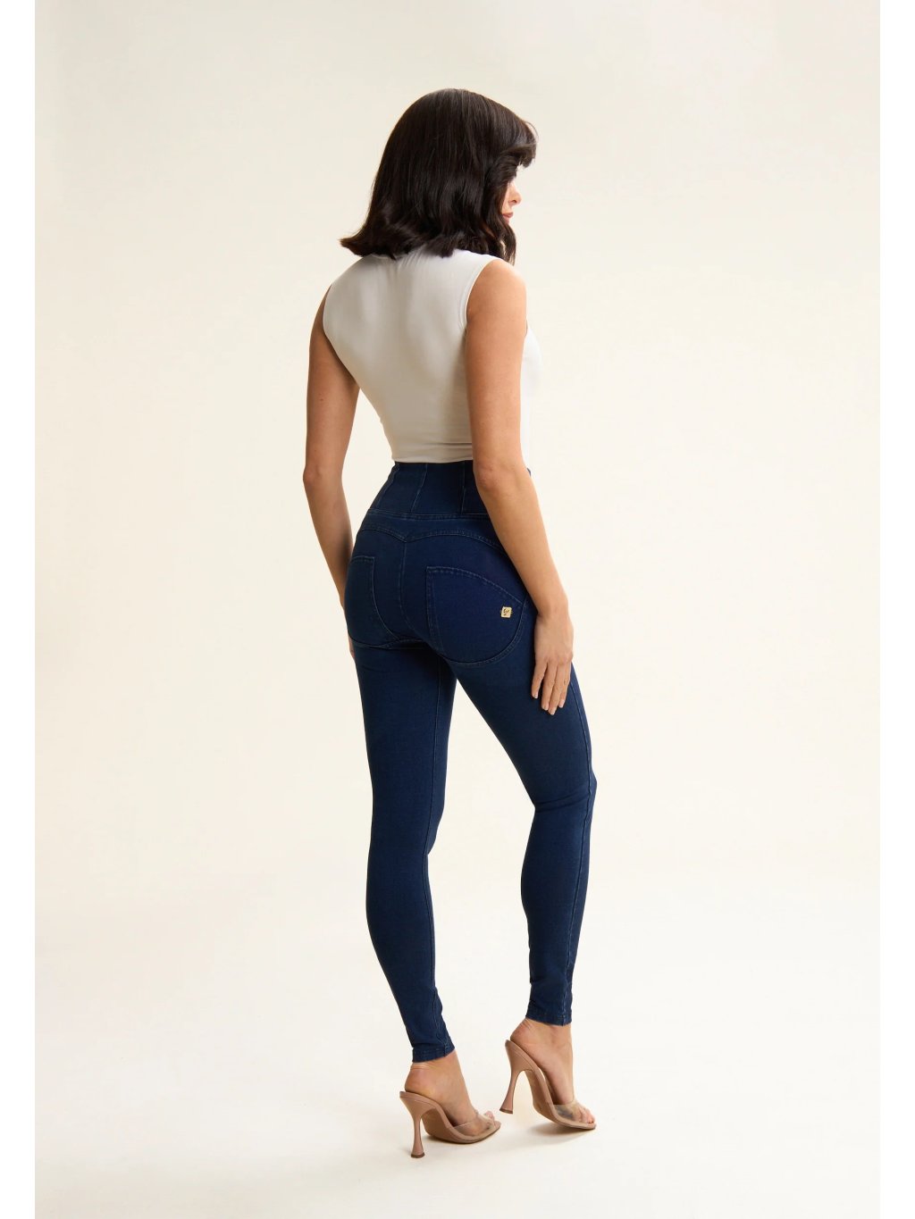 Freddy kalhoty WR.UP džínové tmavě modré, modré švy, vysoký pas, superskinny střih, denim žerzej