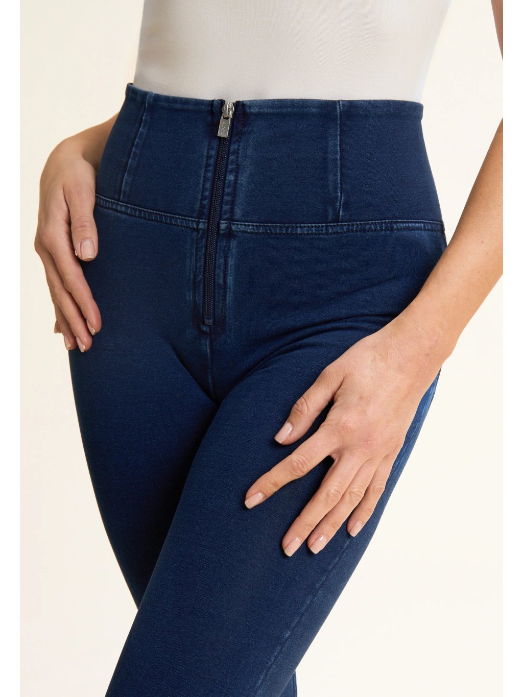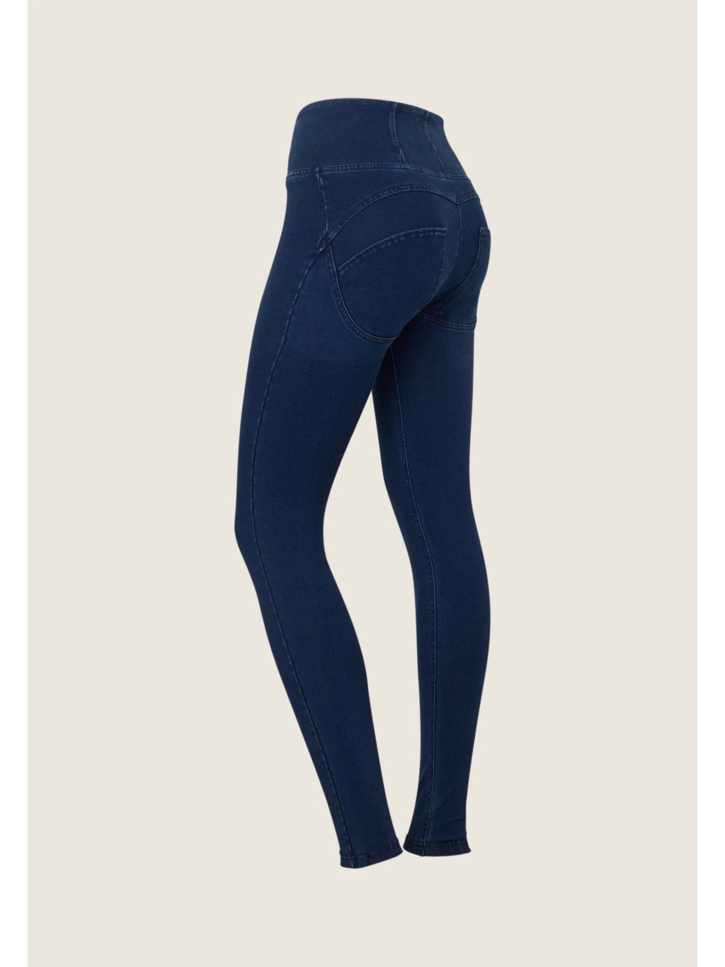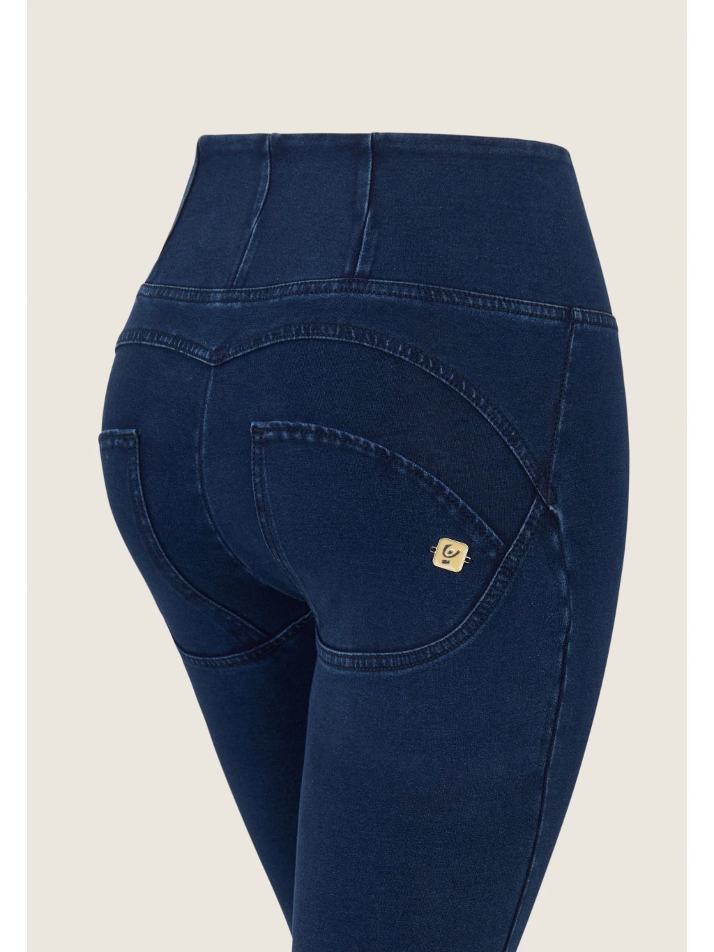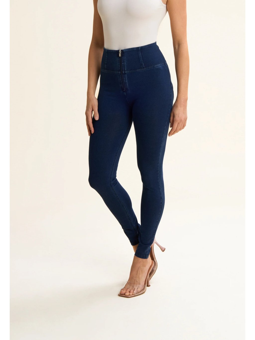 Freddy kalhoty WR.UP džínové tmavě modré, modré švy, vysoký pas, superskinny střih, denim žerzej