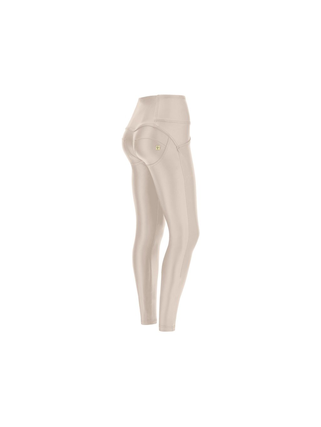 Freddy kalhoty WR.UP koženkové béžové, vysoký pas na knoflíčky, superskinny střih, eco-friendly materiál