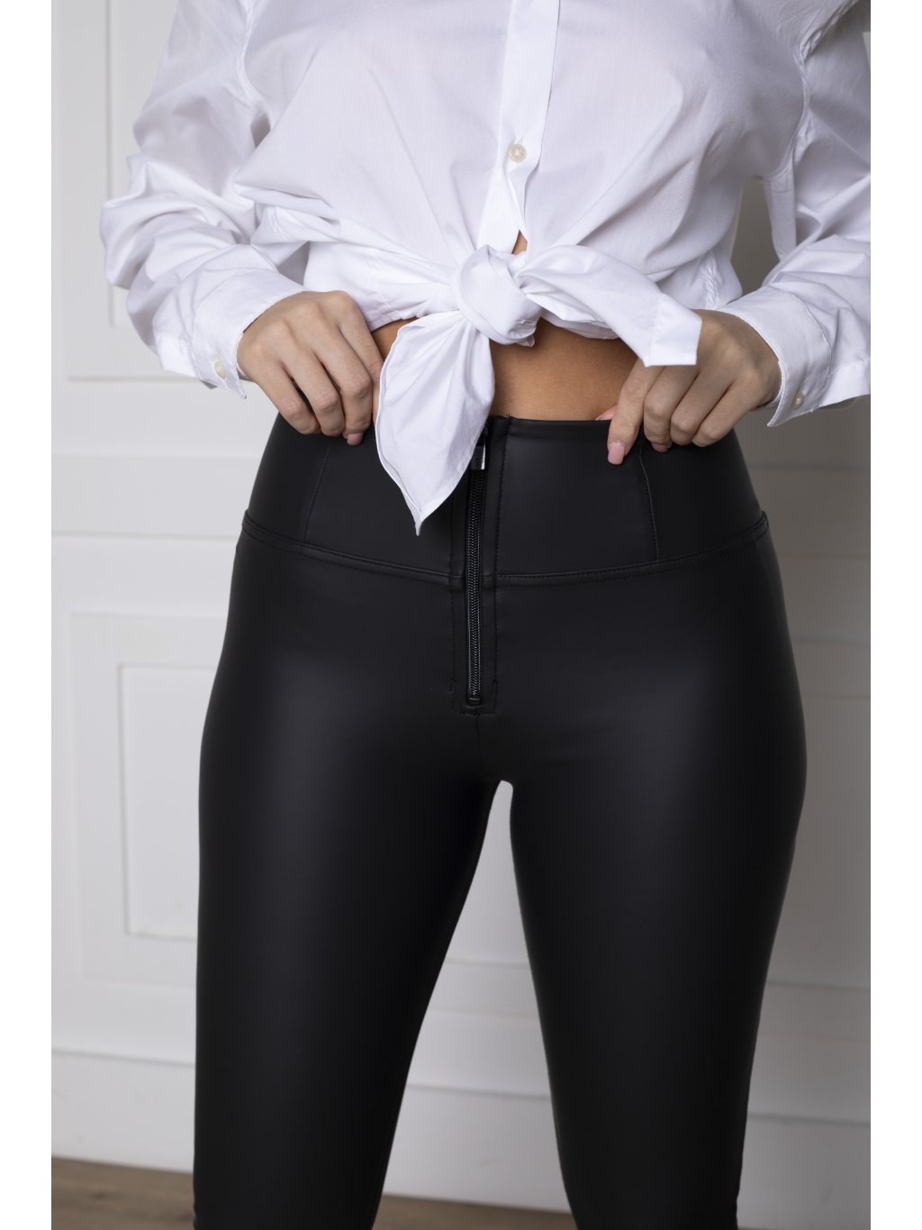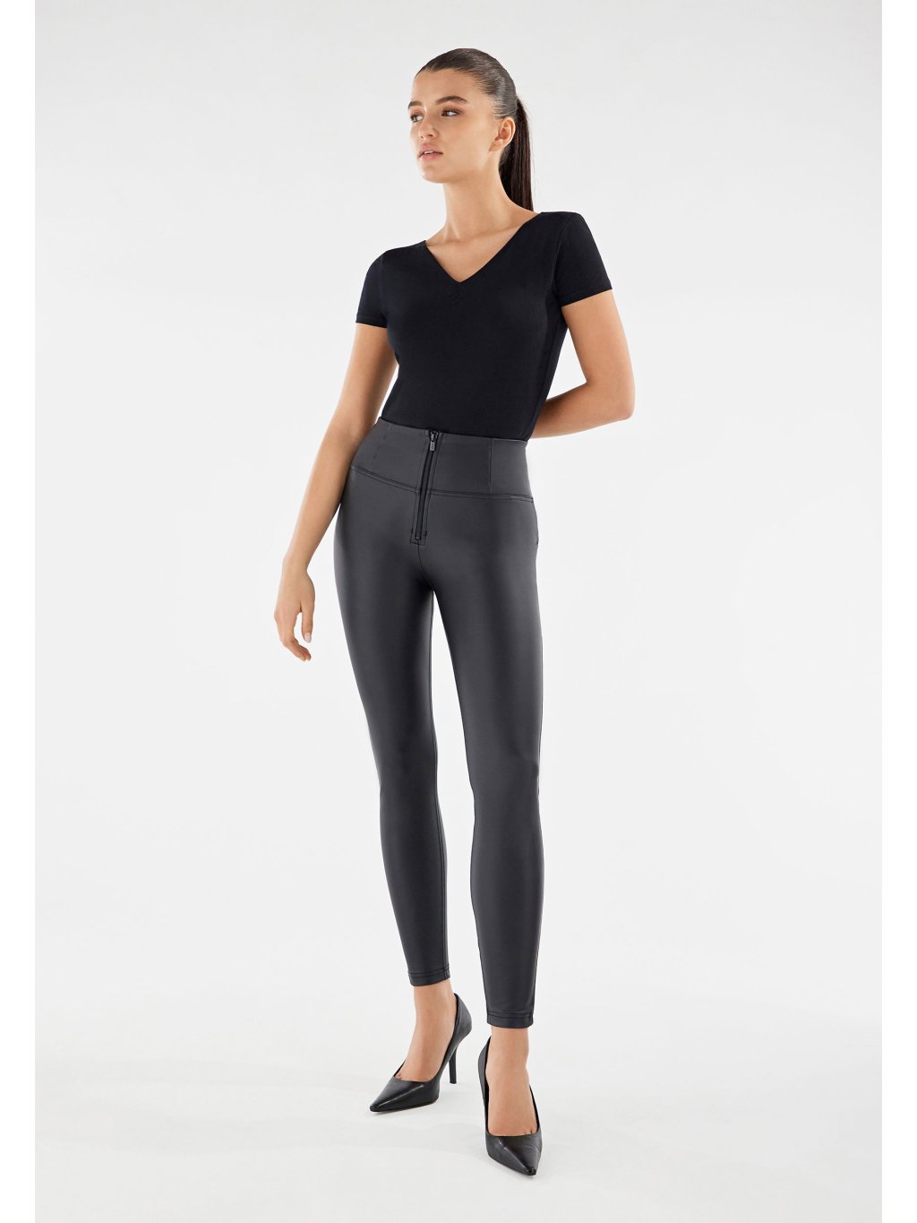 Freddy kalhoty WR.UP koženkové černé, vysoký pas, superskinny střih, eco-friendly materiál