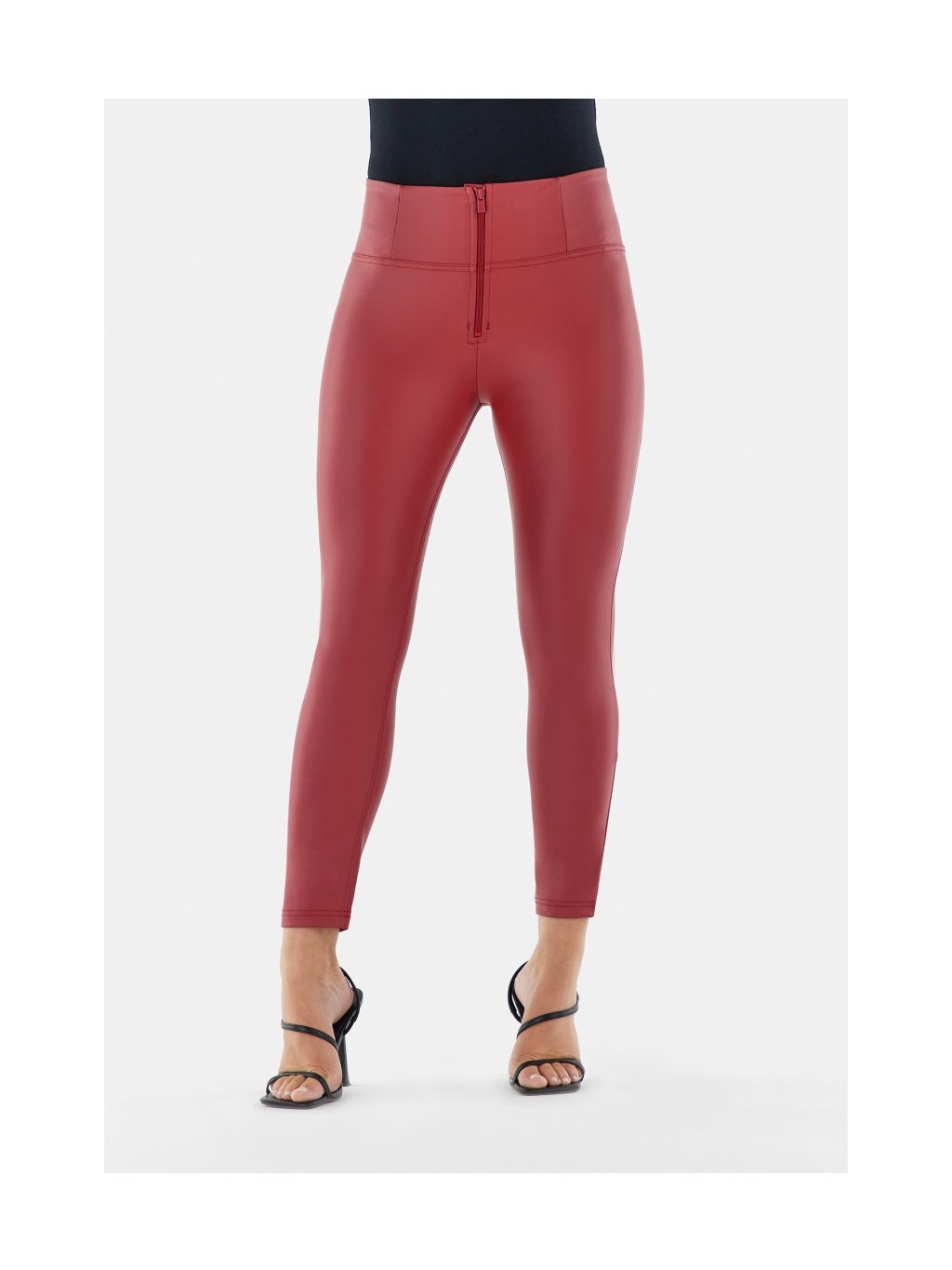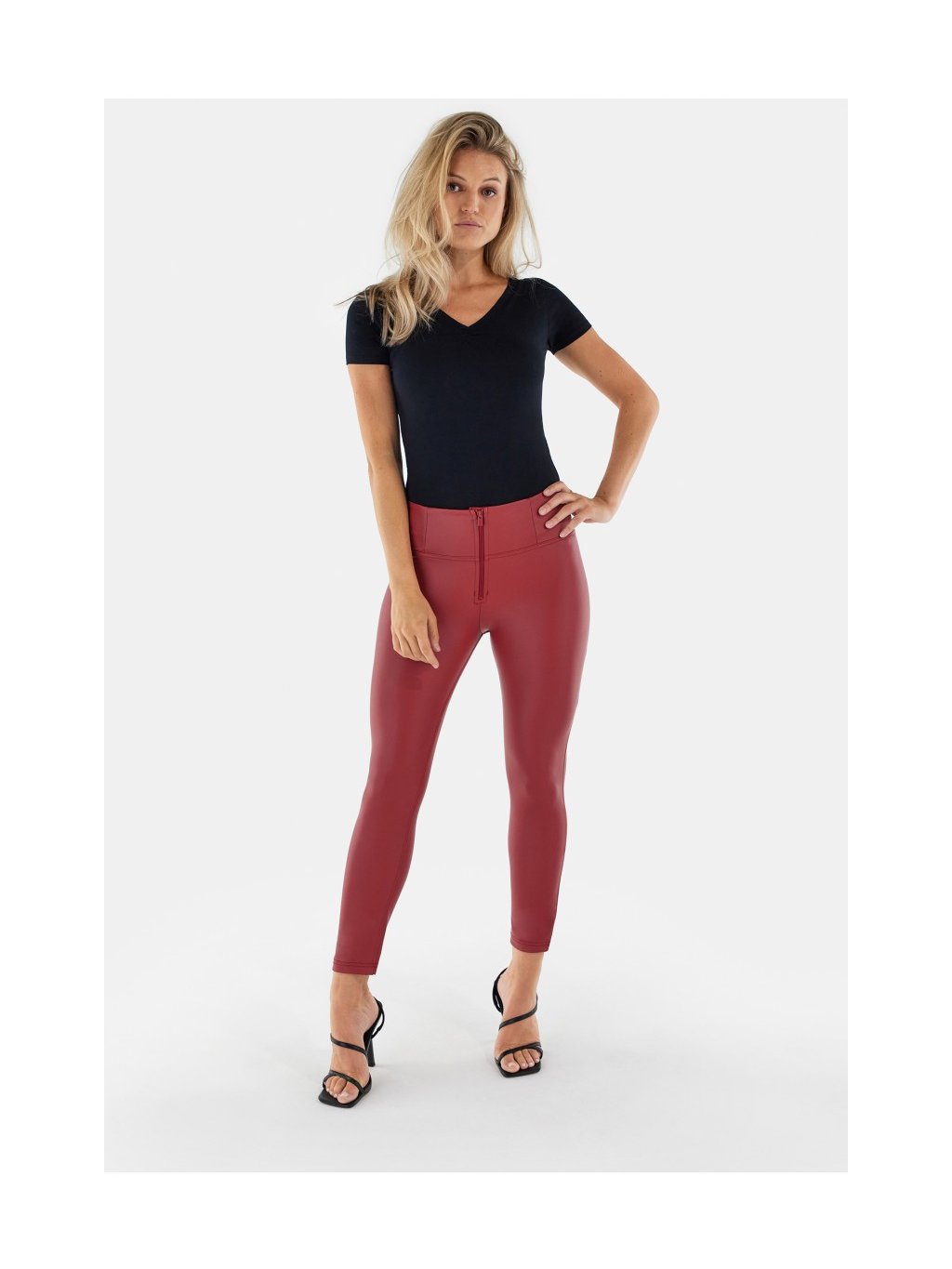 Freddy kalhoty WR.UP koženkové červené, vysoký pas, superskinny střih, 7/8 délka, eco-friendly materiál