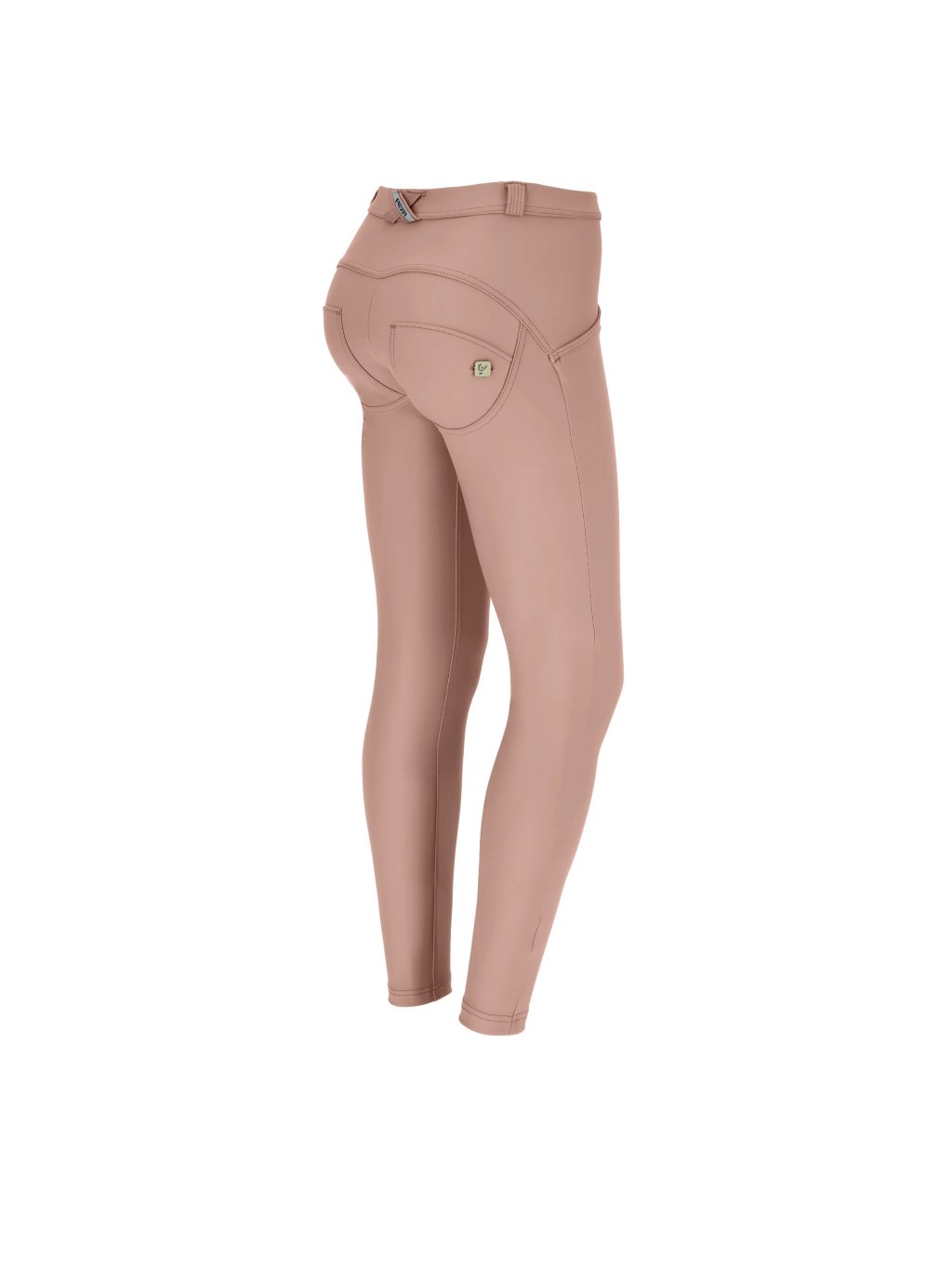 Freddy kalhoty WR.UP koženkové v hnědo-béžové barvě, normální pas, superskinny střih, 7/8 délka, eco-friendly materiál