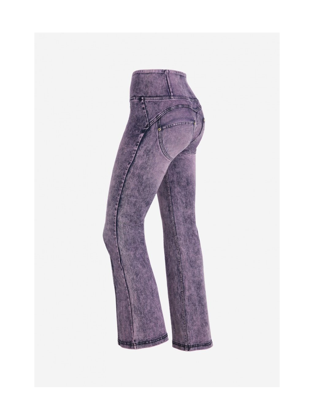 Freddy kalhoty WR.UP SNUG v džínové s fialovým efektem, reálné kapsy, normální pas na knoflíčky, široké nohavice