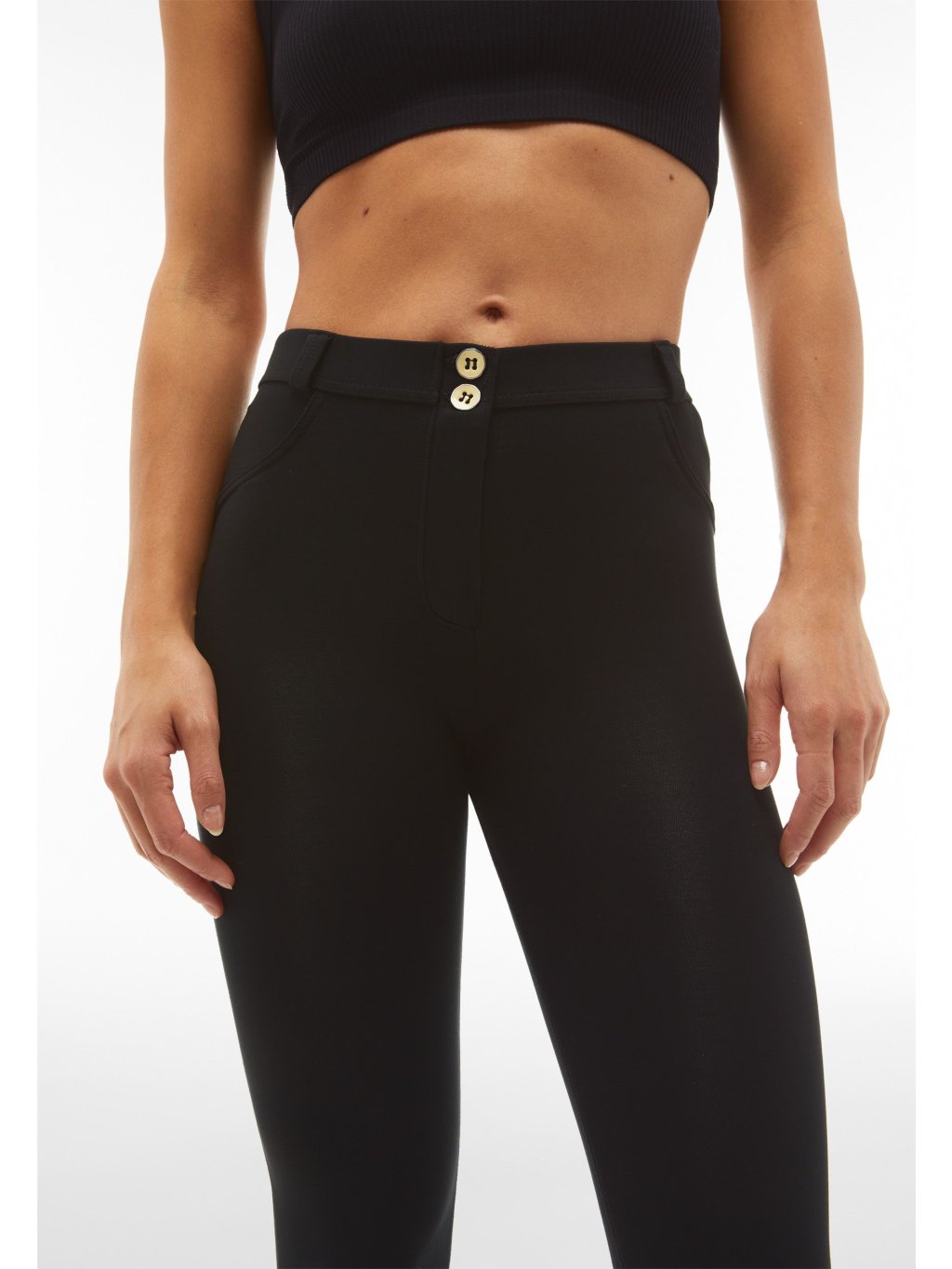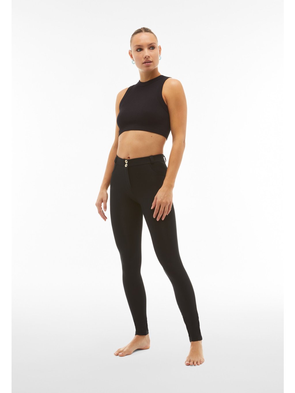 Freddy kalhoty WR.UP v černé barvě, vysoký pas, 2 knoflíčky, superskinny střih, organická bavlna