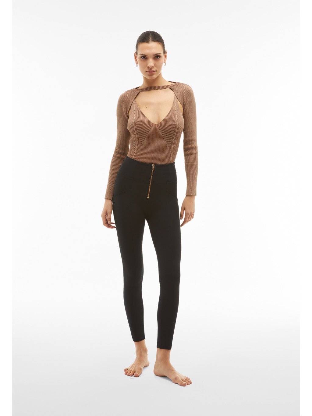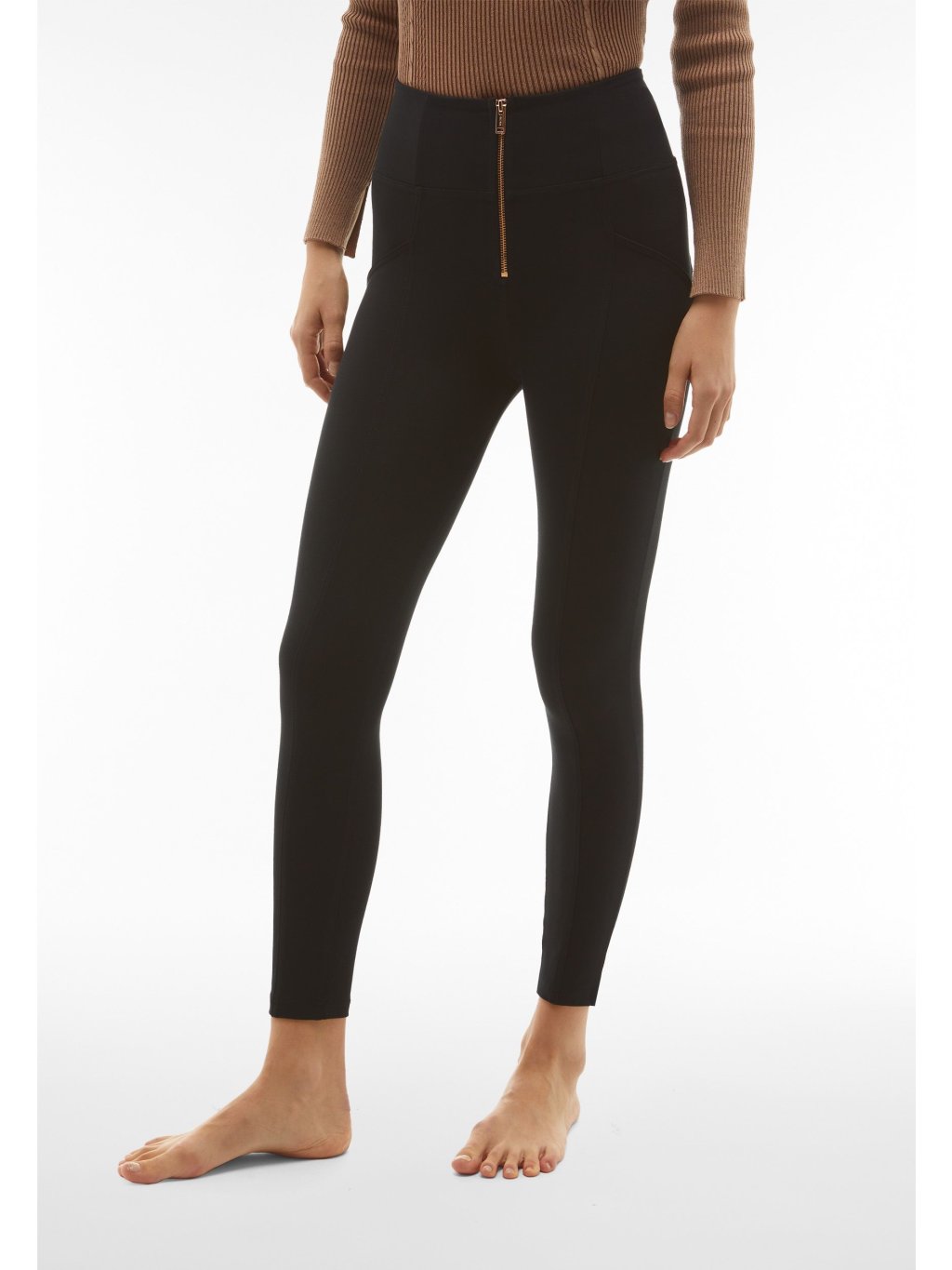 Freddy kalhoty WR.UP® v černé barvě, vysoký pas na zip, super skinny střih na zip, 7/8 délka