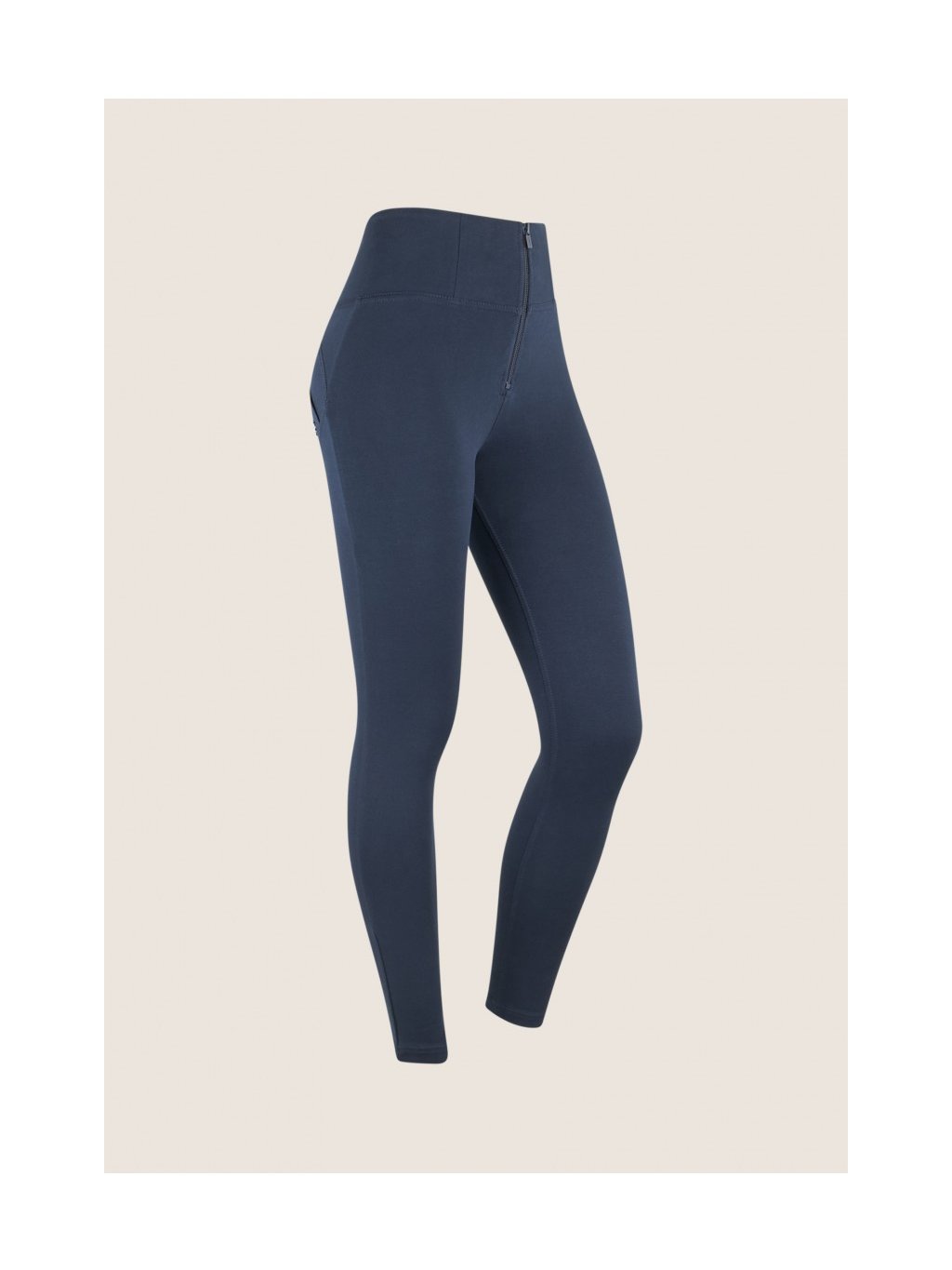 - Vysoký pas (High waist) - kalhoty jsou až do pasu ( k pupíku). Mají pouze zip, který je vidět. Nemají poutka na pásek a silikonový proužek v pase.