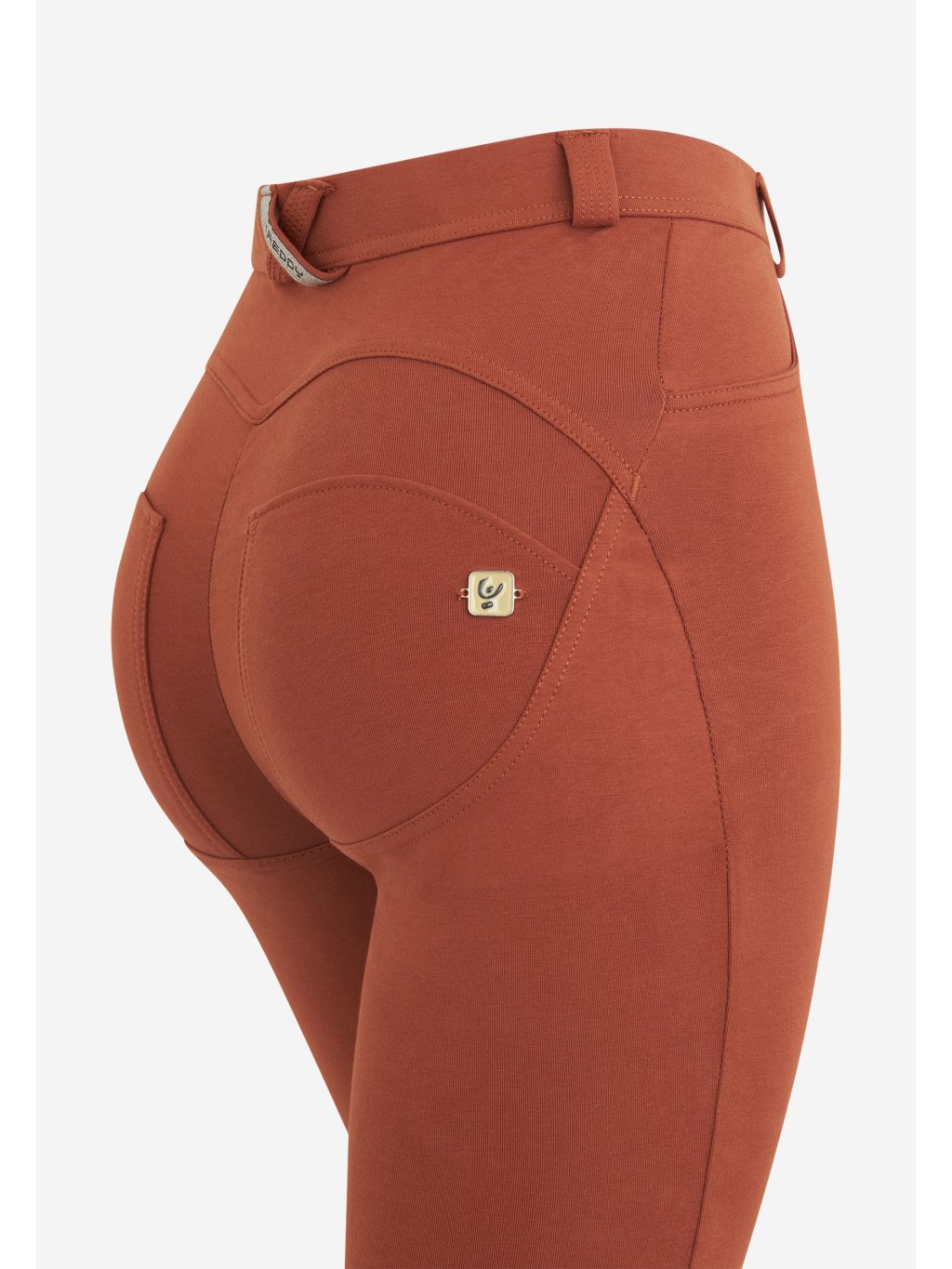 Freddy kalhoty WR.UP v rustikální hnědé barvě, vysoký pas, 2 knoflíčky, superskinny střih, organická bavlna