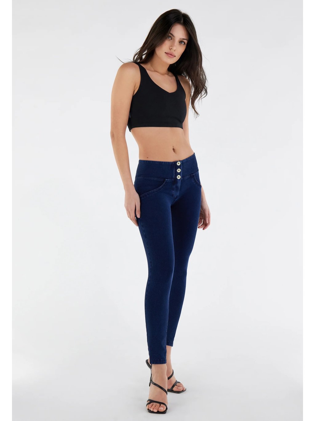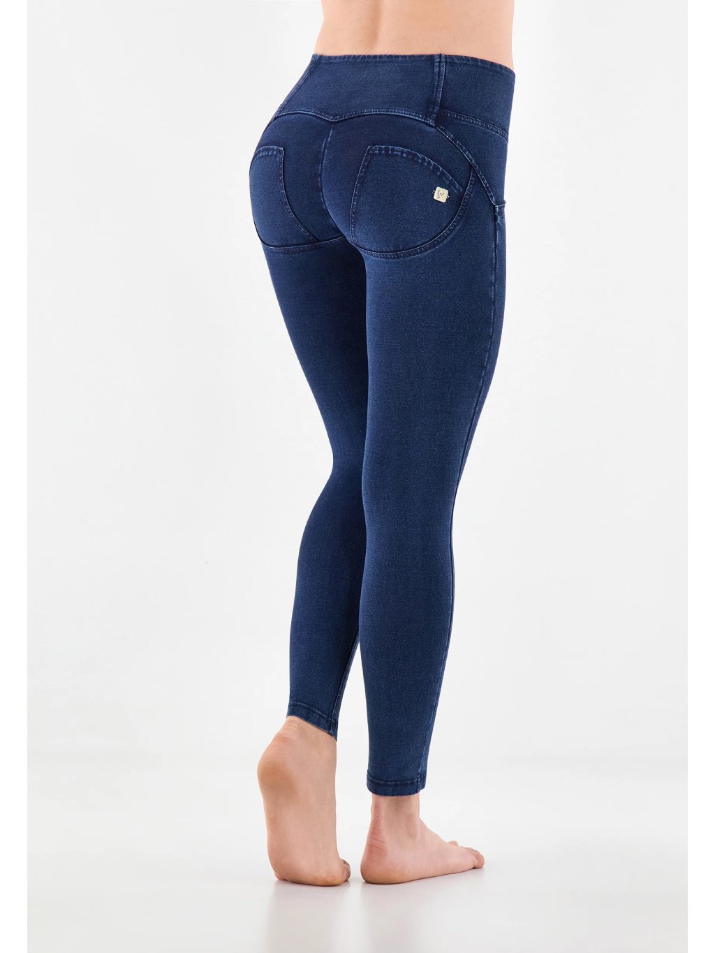 Freddy kalhoty WR.UP ® v džínově modré, zlatý šev, střední pas, superskinny, 7/8 délka, denim žerzej