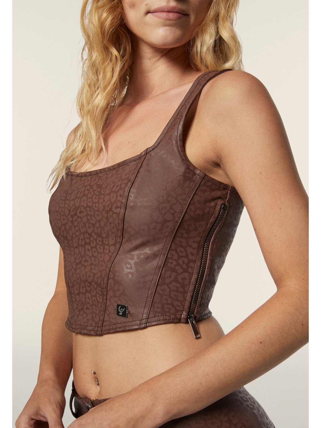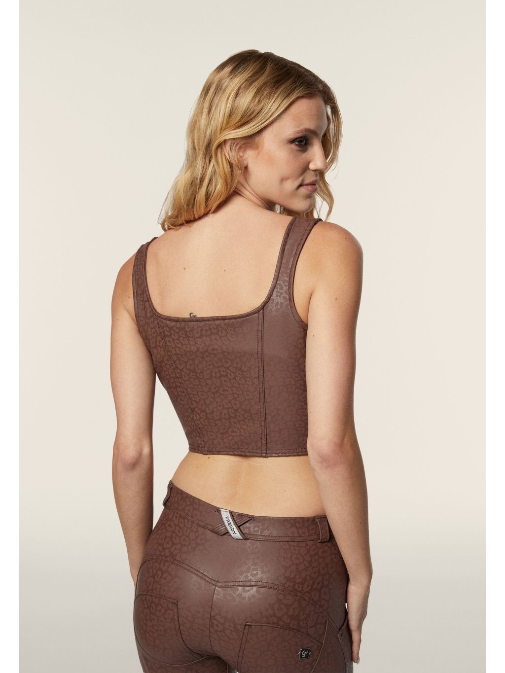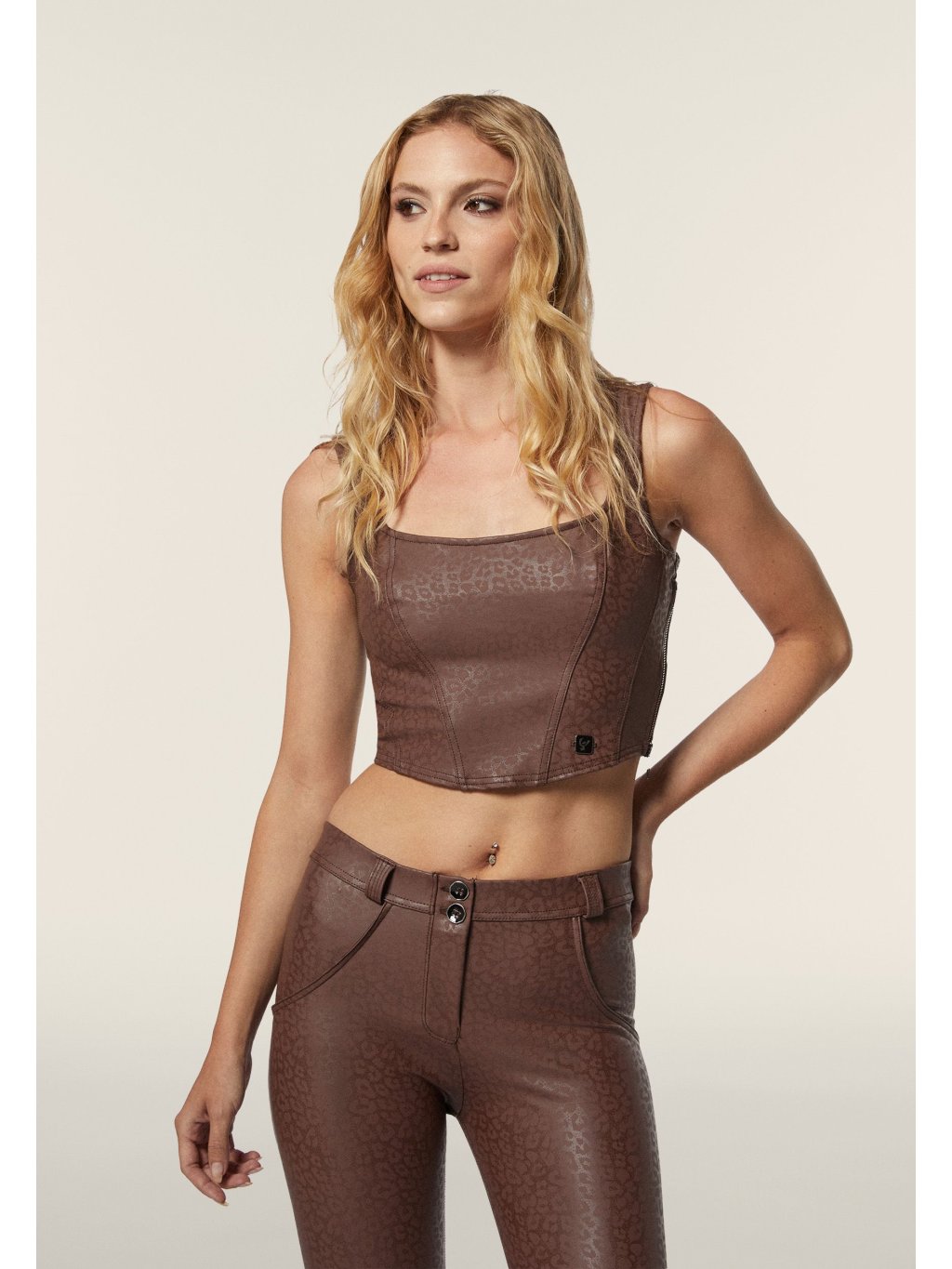 Freddy top z lesklé umělé kůže se zvířecím potiskem v hnědé barvě