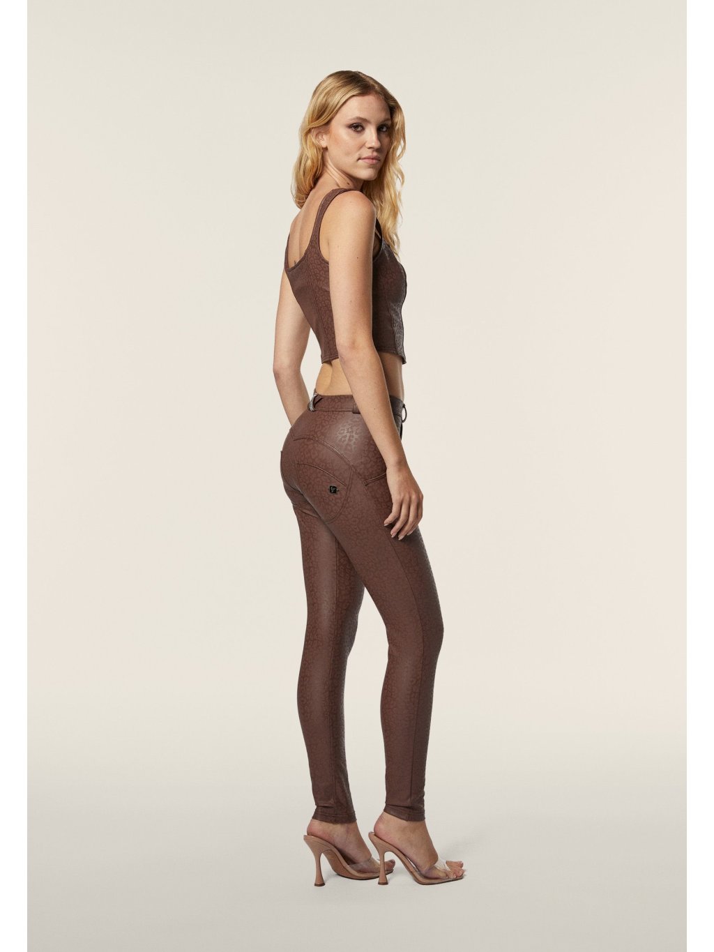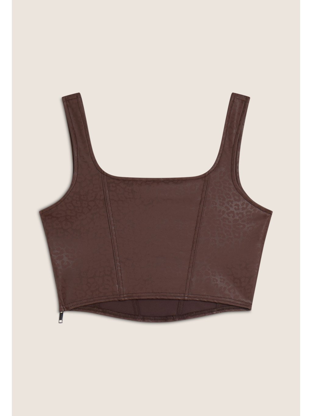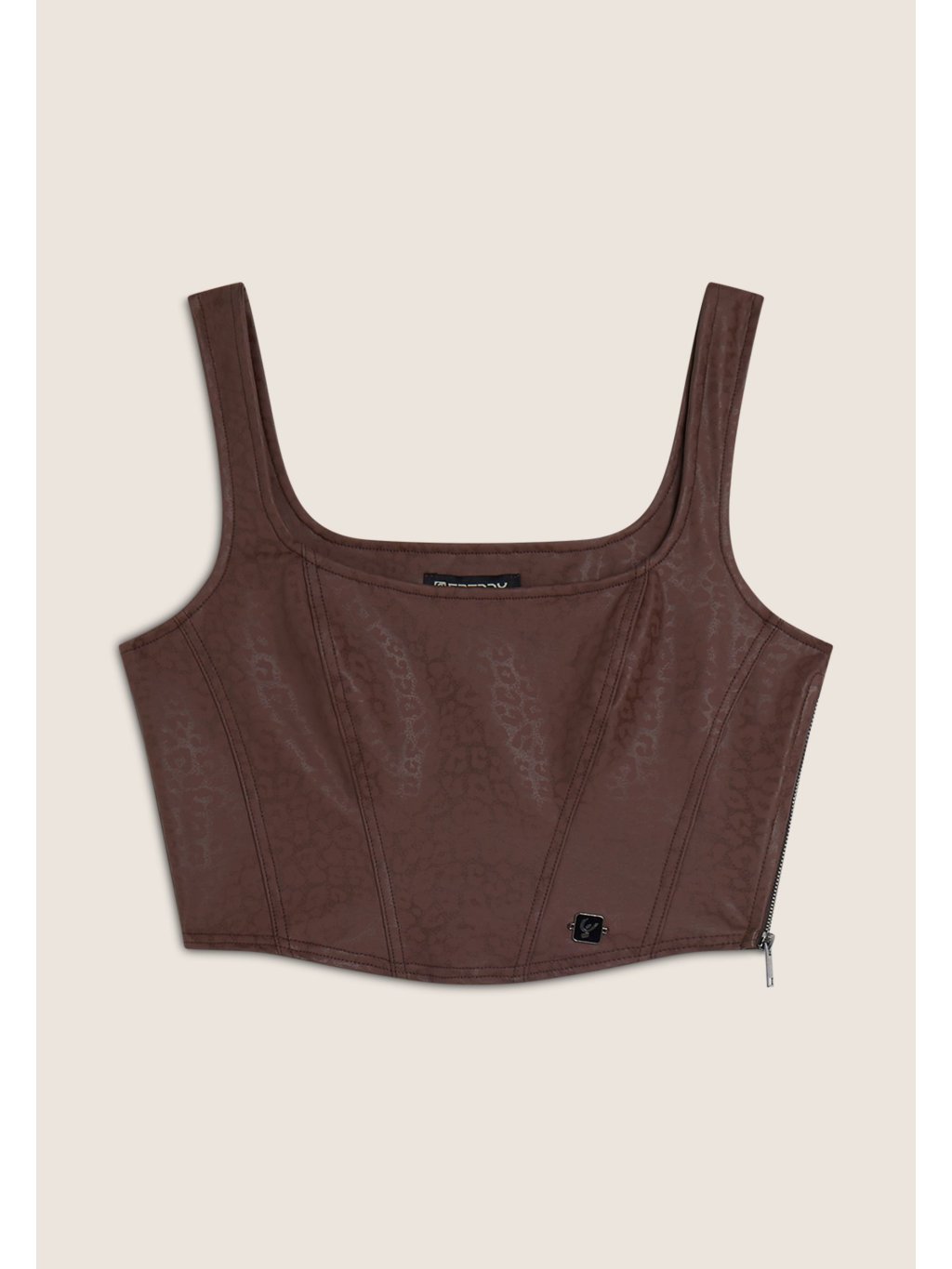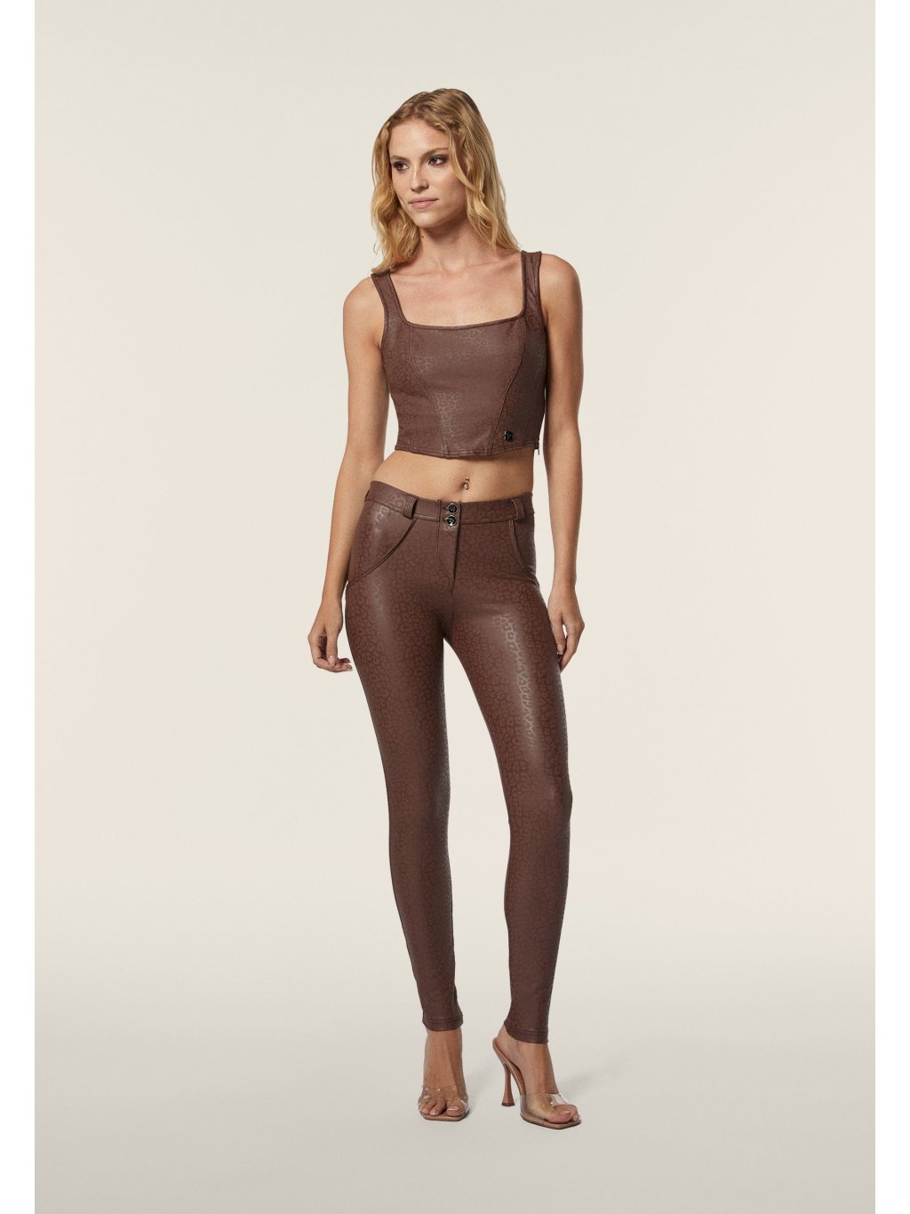 Freddy top z lesklé umělé kůže se zvířecím potiskem v hnědé barvě