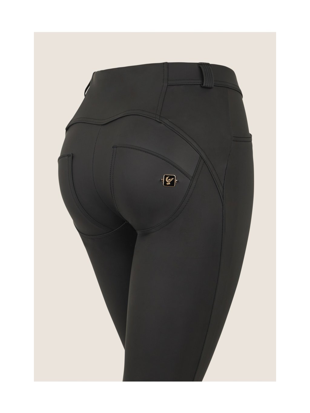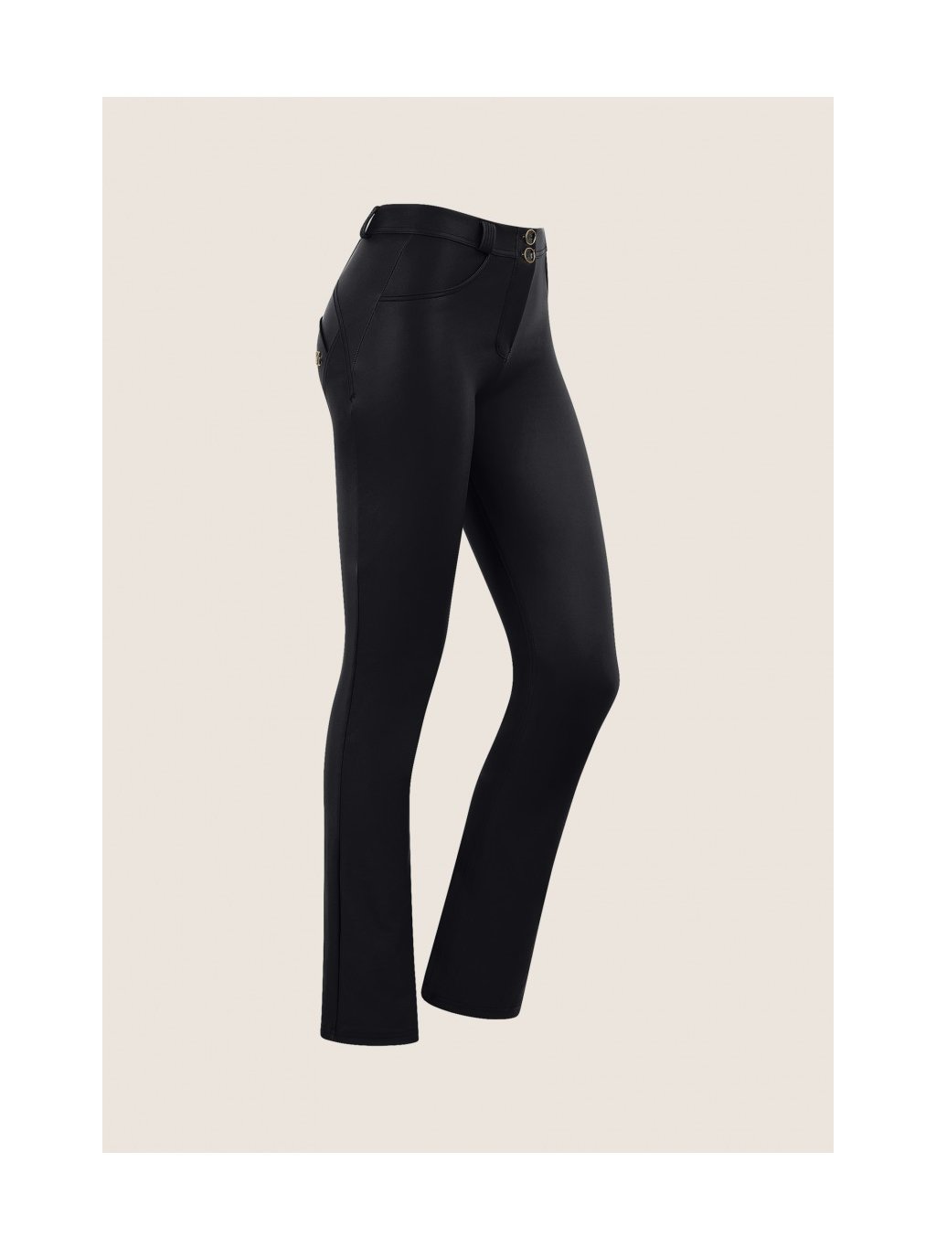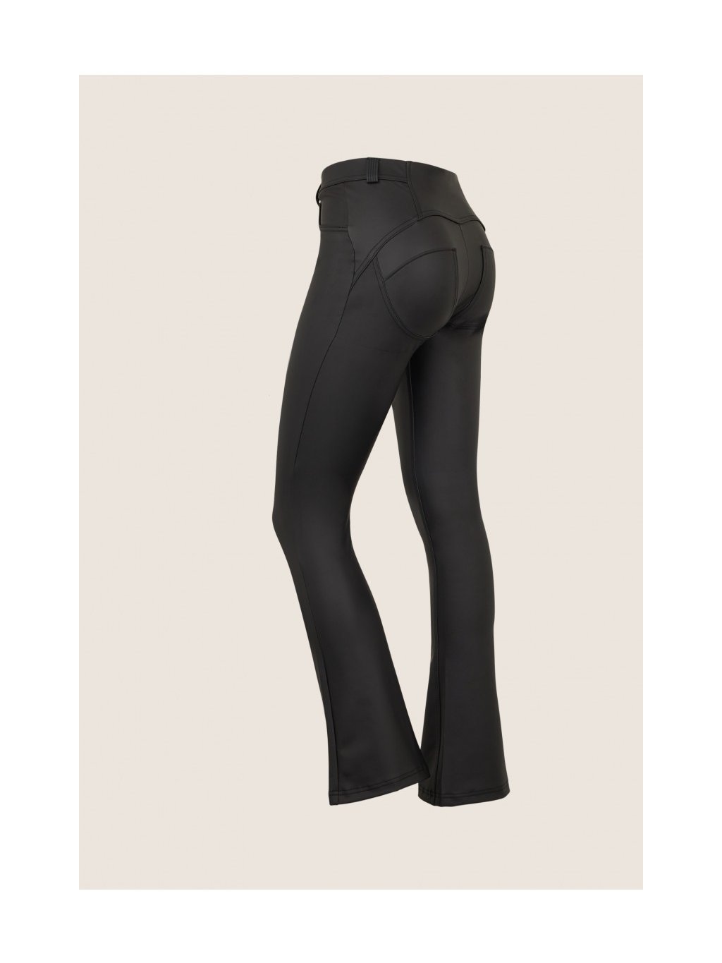 Freddy WR.UP. kalhoty v černé barvě, koženkové, normální pas, zvonové nohavice