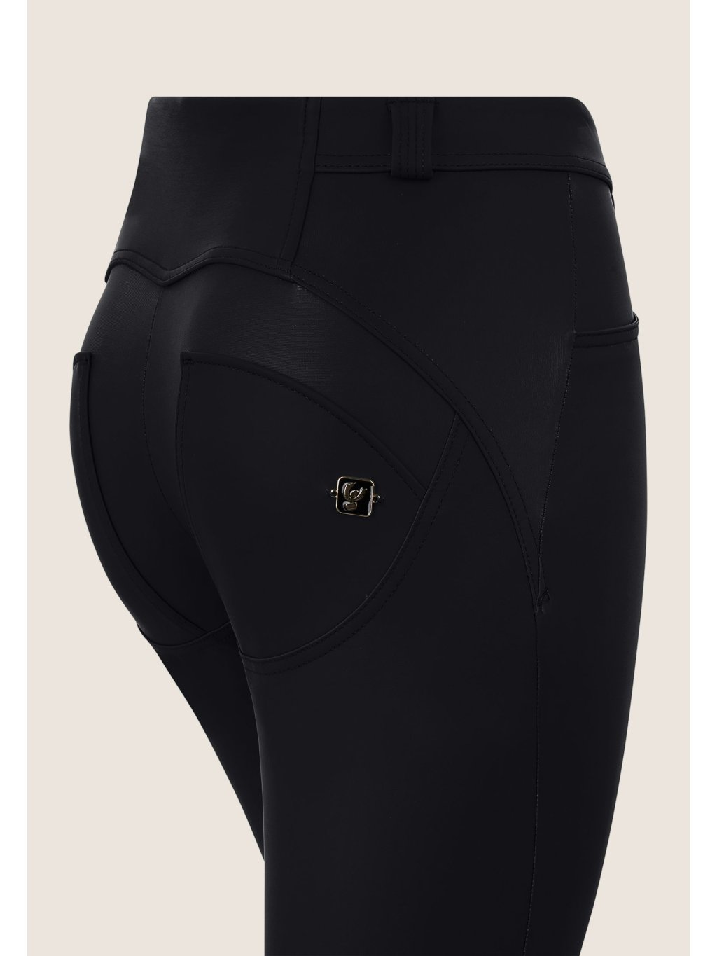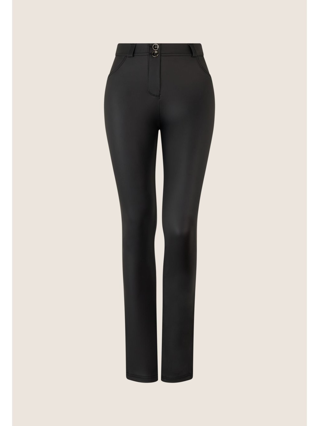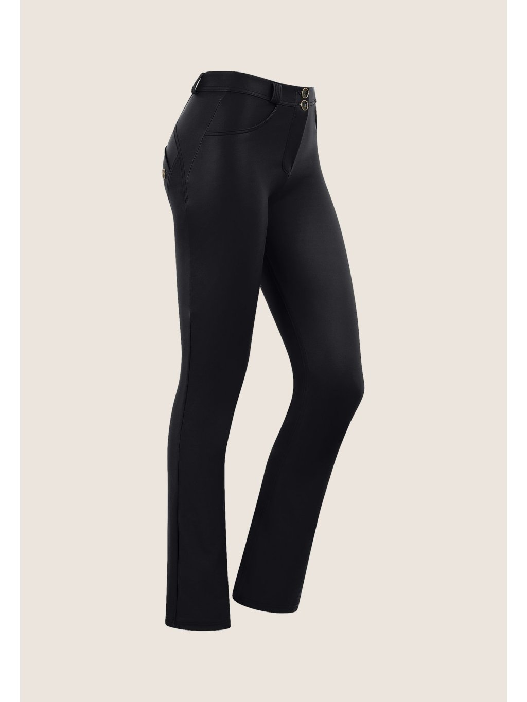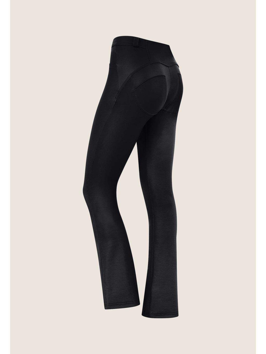 Freddy WR.UP. kalhoty v černé barvě, koženkové, normální pas, zvonové nohavice