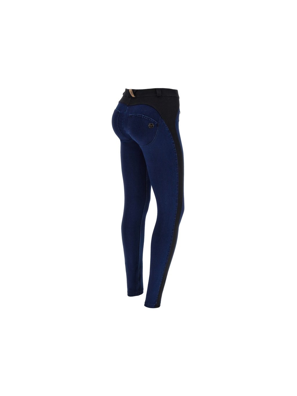 Freddy WR.UP kalhoty v džínově tmavě modré s černým lemováním, vysoký pas, skinny střih, zlaté zipy