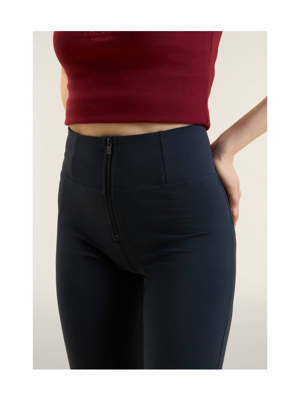Freddy WR.UP kalhoty ve tmavě modré barvě, organická bavlna, vysoký pas na zip, skinny střih