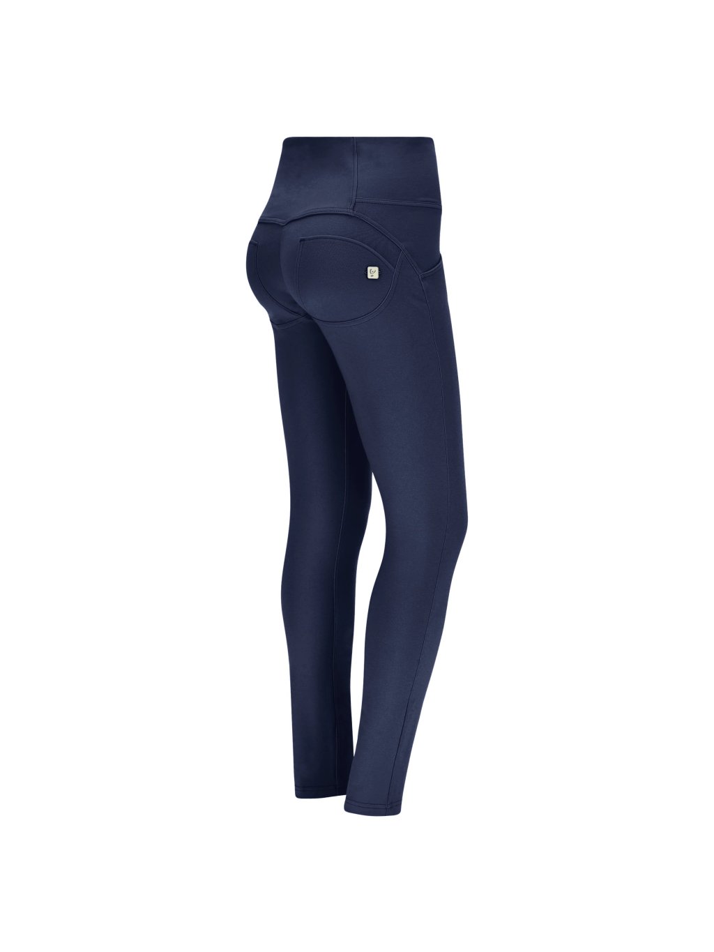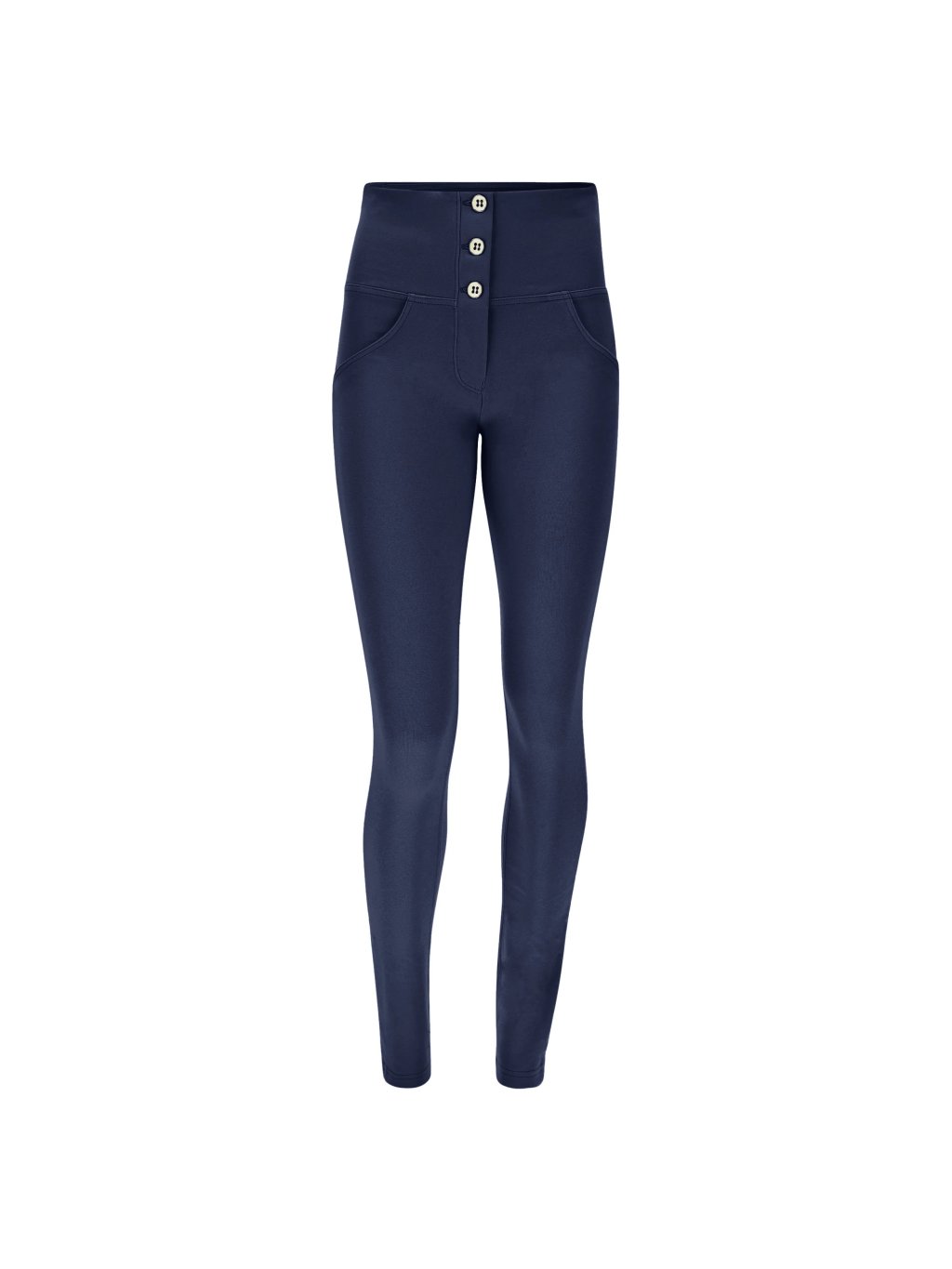Freddy kalhoty WR.UP ve tmavě modré barvě, vysoký pas na knoflíčky, superskinny střih, organická bavlna