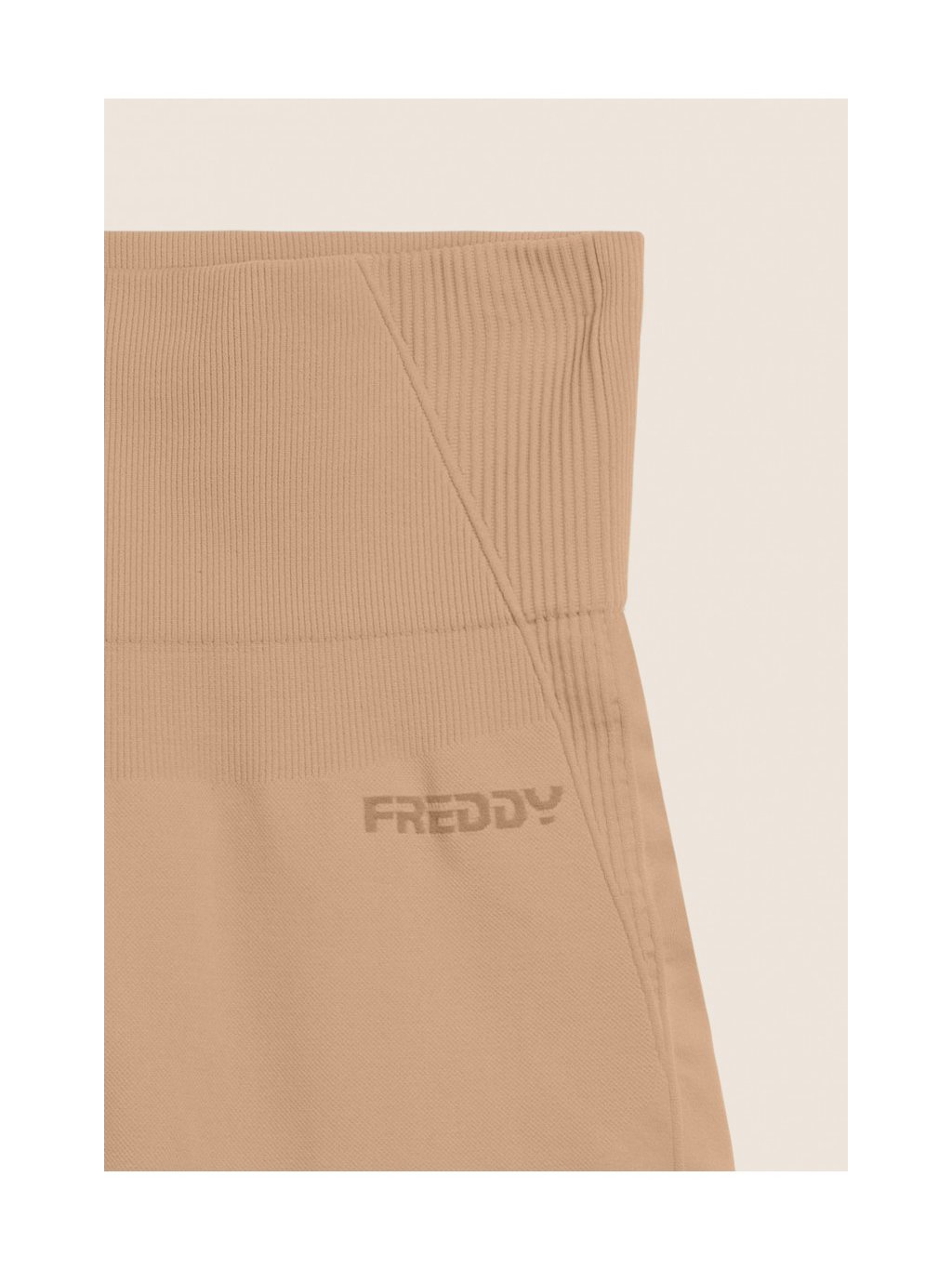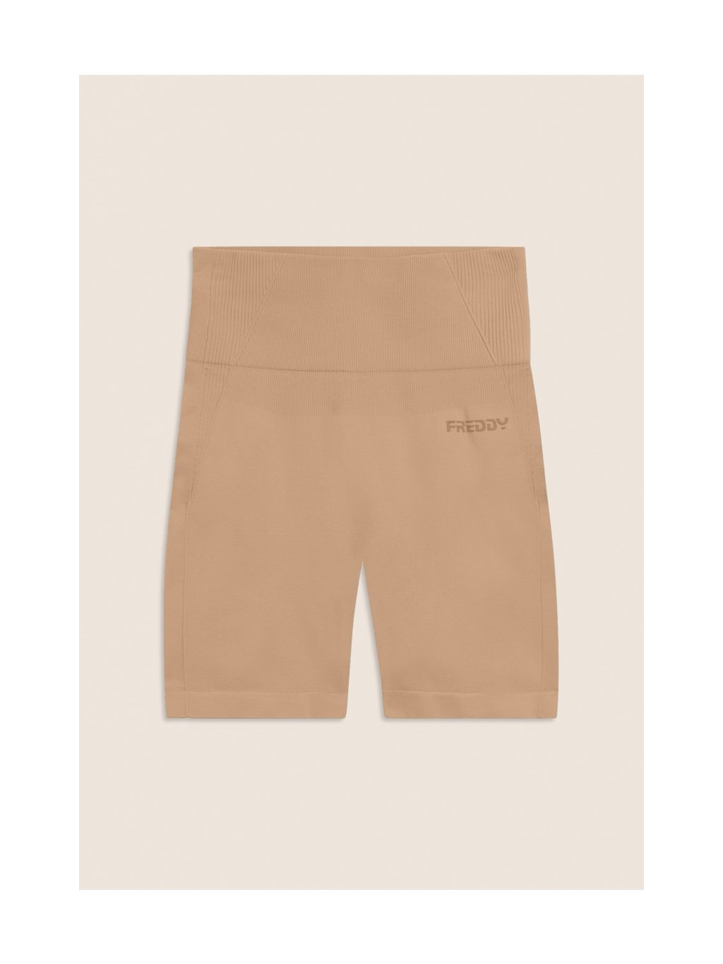Bezešvé krátké legíny s vysokým pasem a žebrovanými vsadkami v béžové barvě