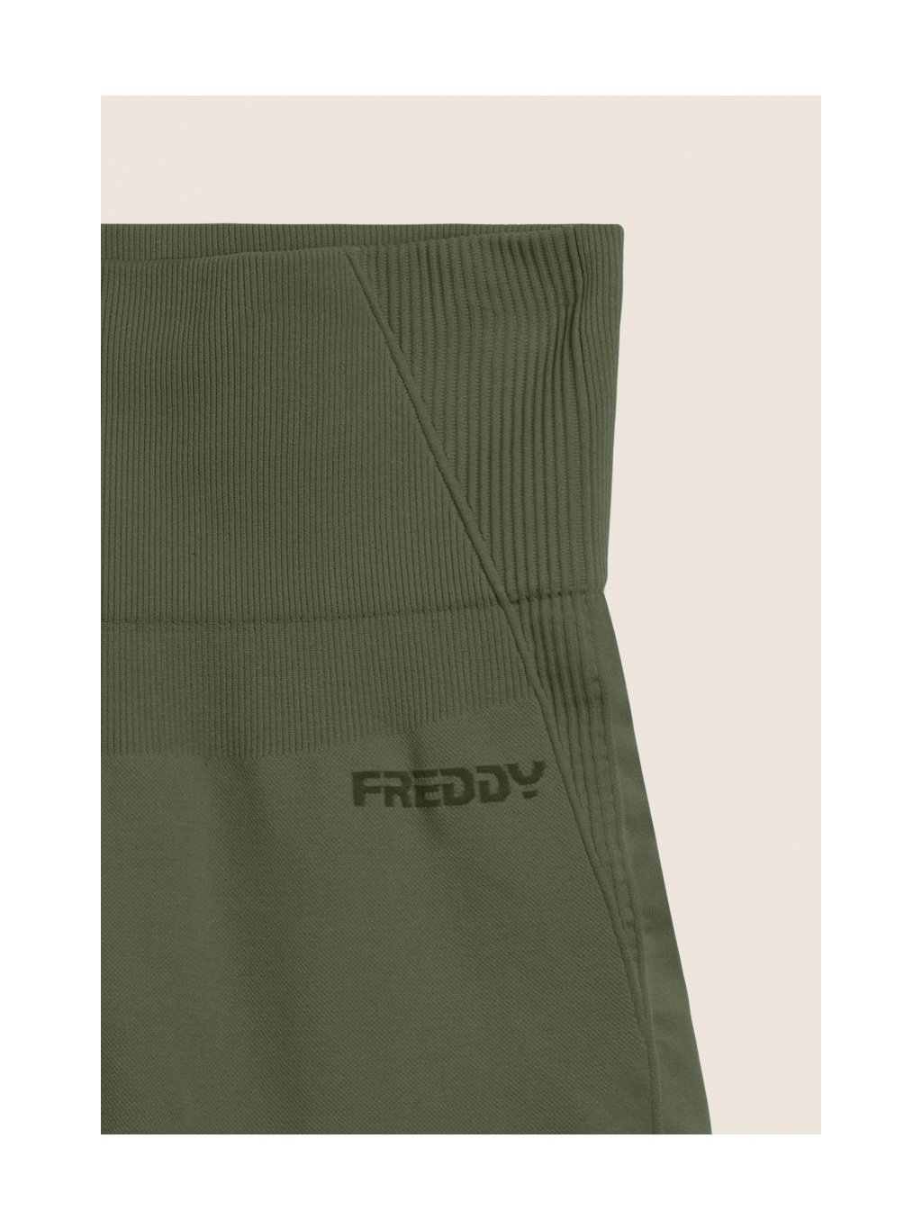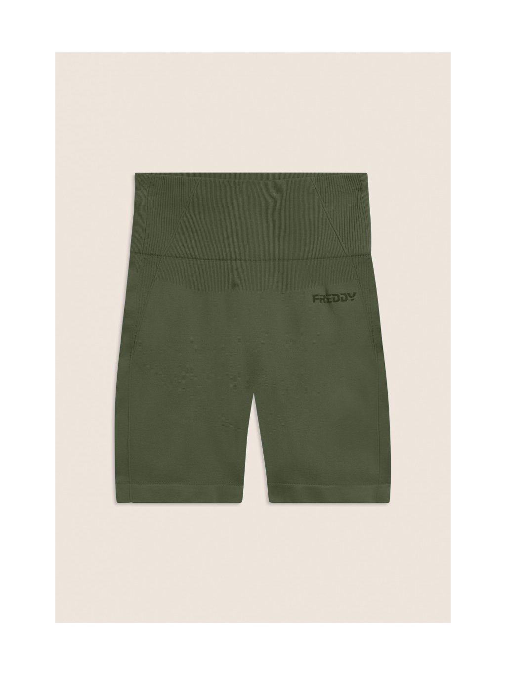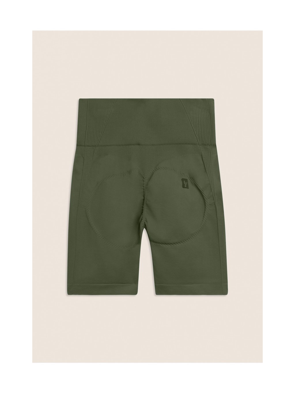 Bezešvé krátké legíny s vysokým pasem a žebrovanými vsadkami v zelené khaki barvě