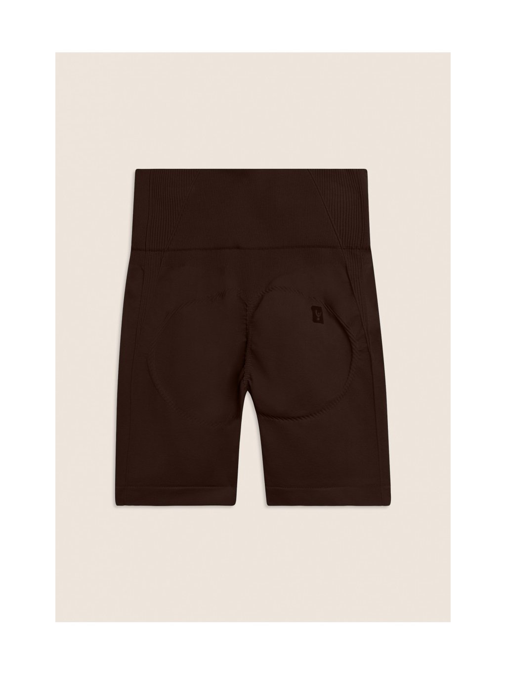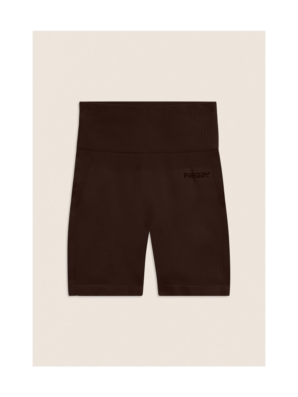 Bezešvé krátké legíny s vysokým pasem a žebrovanými vsadkami ve hnědé barvě