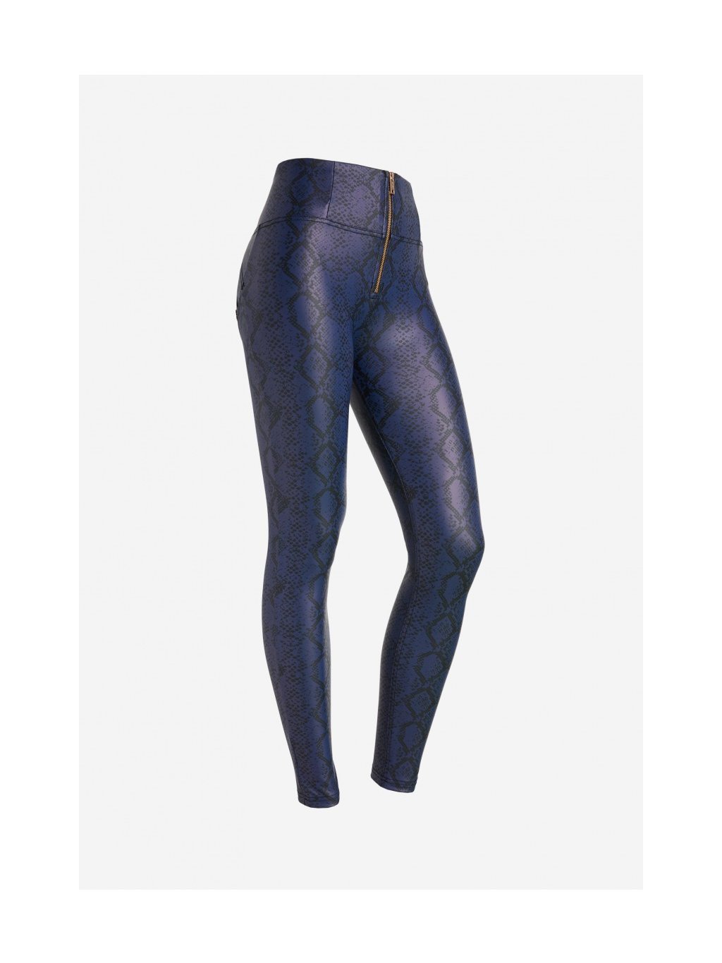 Freddy dámské kalhoty WR.UP® s vysokým pasem ve stylu, umělá kůže, vzorované ve fialové barvě, superskinny